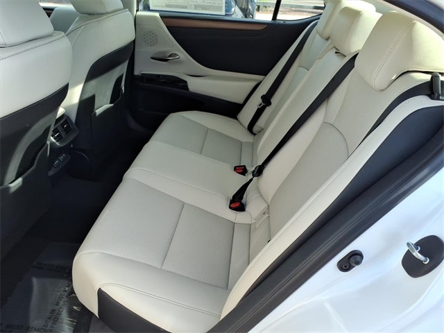 This Lexus ES is equipped with the following features: Premium Package (Heated & Ventilated Seats, Heated Leather 3-Spoke Steering Wheel, Intuitive Parking Assist w/Auto Braking, Lexus Memory System, Parking Support Alert/Brake, Perforated NuLuxe Seat Trim (LD), Power Tilt/Telescoping Steering Wheel, Rain Sensing Wipers, Windshield De-Icer, and Wireless Charger), 02 Artificial Leather, 10 Speakers, 4-Wheel Disc Brakes, ABS brakes, Air Conditioning, All-Weather Floor Liners, All-Weather Floor Liners w/Trunk Tray, All-Weather Trunk Tray, Alloy wheels, AM/FM radio: SiriusXM, Auto High-beam Headlights, Auto-dimming door mirrors, Auto-dimming Rear-View mirror, Automatic temperature control, Brake assist, Bumpers: body-color, Cargo Net, Compass, Delay-off headlights, Driver door bin, Driver vanity mirror, Dual front impact airbags, Dual front side impact airbags, Electronic Stability Control, Emergency communication system, Exterior Parking Camera Rear, Four wheel independent suspension, Front anti-roll bar, Front Bucket Seats, Front Center Armrest, Front dual zone A/C, Front Power Seats, Front reading lights, Fully automatic headlights, Garage door transmitter: HomeLink, Heated door mirrors, Illuminated Door Sills, Illuminated entry, Key Gloves, Knee airbag, Leather Shift Knob, Leather steering wheel, Low tire pressure warning, Navigation system: Drive Connect Cloud Navigation (subscription required), Occupant sensing airbag, Outside temperature display, Overhead airbag, Overhead console, Panic alarm, Passenger door bin, Passenger vanity mirror, Perforated NuLuxe Seat Trim, Power door mirrors, Power driver seat, Power moonroof, Power passenger seat, Power steering, Power windows, Radio data system, Radio: Lexus Interface w/8" Touch Screen, Rear anti-roll bar, Rear Bumper Applique, Rear reading lights, Rear seat center armrest, Rear side impact airbag, Rear window defroster, Remote keyless entry, Security system, Speed control, Speed-sensing steering, Steering wheel mounted audio controls, Tachometer, Telescoping steering wheel, Tilt steering wheel, Traction control, Trip computer, Turn signal indicator mirrors, Variably intermittent wipers, Wheels: 17" Twin-V-Spoke Alloy, Wheels: 18" Split-10-Spoke Two-Tone Alloy, and Wireless Apple CarPlay/Wireless Android Auto.