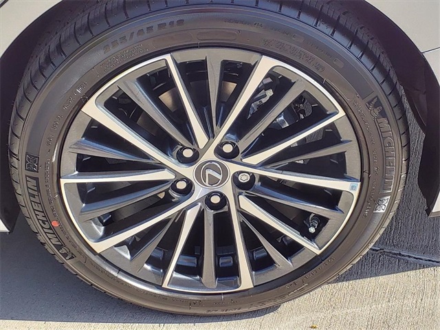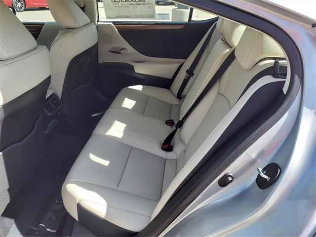 This Lexus ES is equipped with the following features: Premium Package (Heated & Ventilated Seats, Heated Leather 3-Spoke Steering Wheel, Intuitive Parking Assist w/Auto Braking, Lexus Memory System, Parking Support Alert/Brake, Perforated NuLuxe Seat Trim (LD), Power Tilt/Telescoping Steering Wheel, Rain Sensing Wipers, Windshield De-Icer, and Wireless Charger), 02 Artificial Leather, 10 Speakers, 4-Wheel Disc Brakes, ABS brakes, Air Conditioning, All-Weather Floor Liners, All-Weather Floor Liners w/Trunk Tray, All-Weather Trunk Tray, Alloy wheels, AM/FM radio: SiriusXM, Auto High-beam Headlights, Auto-dimming door mirrors, Auto-dimming Rear-View mirror, Automatic temperature control, Brake assist, Bumpers: body-color, Compass, Delay-off headlights, Driver door bin, Driver vanity mirror, Dual front impact airbags, Dual front side impact airbags, Electronic Stability Control, Emergency communication system, Exterior Parking Camera Rear, Four wheel independent suspension, Front anti-roll bar, Front Bucket Seats, Front Center Armrest, Front dual zone A/C, Front Power Seats, Front reading lights, Fully automatic headlights, Garage door transmitter: HomeLink, Heated door mirrors, Illuminated entry, Knee airbag, Leather Shift Knob, Leather steering wheel, Low tire pressure warning, Navigation system: Drive Connect Cloud Navigation (subscription required), Occupant sensing airbag, Outside temperature display, Overhead airbag, Overhead console, Panic alarm, Passenger door bin, Passenger vanity mirror, Perforated NuLuxe Seat Trim, Power door mirrors, Power driver seat, Power moonroof, Power passenger seat, Power steering, Power windows, Radio data system, Radio: Lexus Interface w/8" Touch Screen, Rear anti-roll bar, Rear reading lights, Rear seat center armrest, Rear side impact airbag, Rear window defroster, Remote keyless entry, Security system, Speed control, Speed-sensing steering, Steering wheel mounted audio controls, Tachometer, Telescoping steering wheel, Tilt steering wheel, Traction control, Trip computer, Turn signal indicator mirrors, Variably intermittent wipers, Wheel Locks, Wheels: 17" Twin-V-Spoke Alloy, Wheels: 18" Split-10-Spoke Two-Tone Alloy, and Wireless Apple CarPlay/Wireless Android Auto.