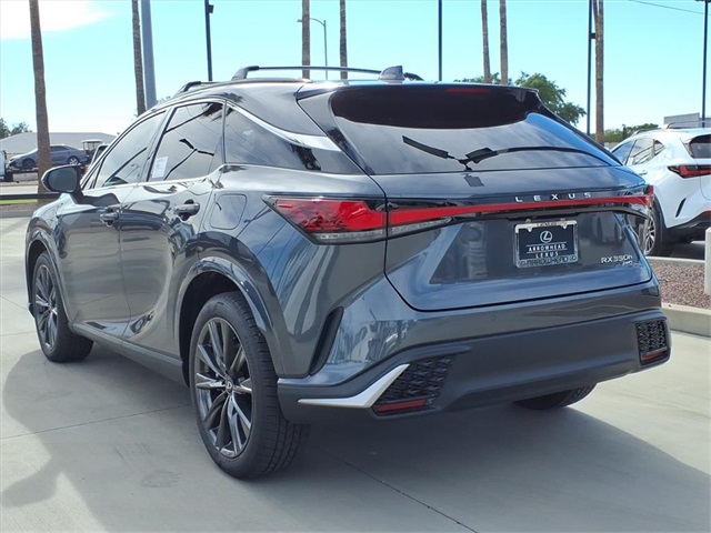This Lexus RX is equipped with the following features: Convenience Package, F SPORT Design Package, 2.5L I4 DOHC 16V, AWD, 21 Artificial Leather, 12 Speakers, 120V AC Inverter, 4-Wheel Disc Brakes, ABS brakes, Air Conditioning, Alloy wheels, AM/FM radio: SiriusXM, Anti-whiplash front head restraints, Auto High-beam Headlights, Auto tilt-away steering wheel, Auto-dimming door mirrors, Auto-dimming Rear-View mirror, Automatic temperature control, Brake assist, Bumpers: body-color, Compass, Cross Bars, Delay-off headlights, Digital Key, Door Edge Film by 3M, Driver door bin, Driver vanity mirror, Dual front impact airbags, Dual front side impact airbags, Electronic Stability Control, Emergency communication system: Safety Connect (10-year trial), Exterior Parking Camera Rear, Four wheel independent suspension, Front anti-roll bar, Front Bucket Seats, Front Center Armrest, Front dual zone A/C, Front fog lights, Front reading lights, Fully automatic headlights, Garage door transmitter: HomeLink, Heated door mirrors, Heated Front Bucket Seats, Heated front seats, Heated steering wheel, Illuminated entry, Leather Shift Knob, Leather steering wheel, Low tire pressure warning, Memory seat, Navigation System, NuLuxe Seat Trim, Occupant sensing airbag, Outside temperature display, Overhead airbag, Overhead console, Panic alarm, Passenger door bin, Passenger vanity mirror, Power door mirrors, Power driver seat, Power Liftgate, Power moonroof, Power passenger seat, Power Rear Door w/Kick Sensor, Power steering, Power windows, Radio data system, Radio: Lexus Interface w/14" Touchscreen Display, Radio: Lexus Interface w/9.8" Touchscreen Display, Rain sensing wipers, Rear air conditioning, Rear anti-roll bar, Rear reading lights, Rear seat center armrest, Rear side impact airbag, Rear window defroster, Rear window wiper, Remote keyless entry, Security system, Speed control, Speed-sensing steering, Split folding rear seat, Spoiler, Steering wheel memory, Steering wheel mounted audio controls, Telescoping steering wheel, Tilt steering wheel, Traction control, Trip computer, Turn signal indicator mirrors, Variably intermittent wipers, Ventilated front seats, Wheels: 21" 10-Spoke Alloy, and Wireless Apple CarPlay/Wireless Android Auto.
