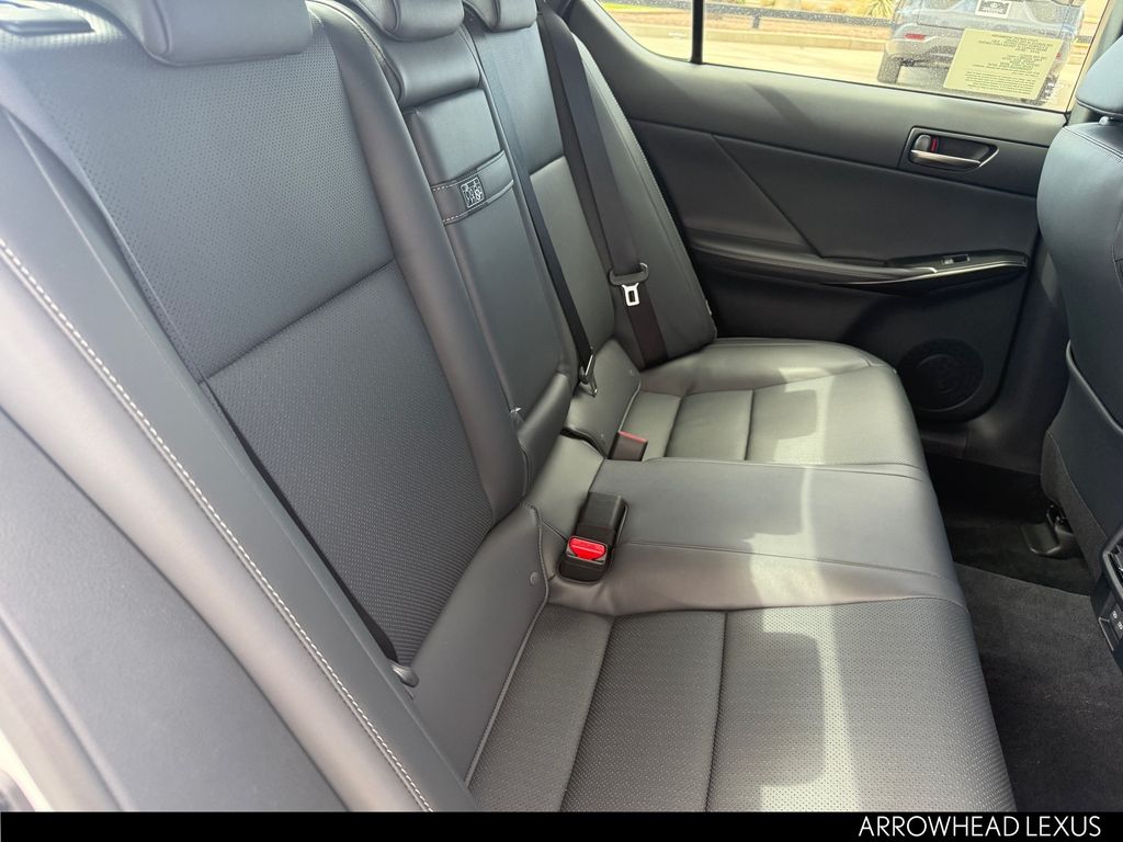 This Lexus IS is equipped with the following features: F SPORT Design Package, AWD, Blk Nuluxe W/Blk Met Trm Artificial Leather, 10 Speakers, 4-Wheel Disc Brakes, ABS brakes, Air Conditioning, Alloy wheels, AM/FM radio: SiriusXM, Auto High-beam Headlights, Auto-dimming door mirrors, Auto-dimming Rear-View mirror, Automatic temperature control, Brake assist, Bumpers: body-color, Cargo Net, Carpet Trunk Mat, Compass, Delay-off headlights, Driver door bin, Driver vanity mirror, Dual front impact airbags, Dual front side impact airbags, Electronic Stability Control, Emergency communication system: Safety Connect (3-year trial), Exterior Parking Camera Rear, Four wheel independent suspension, Front anti-roll bar, Front Bucket Seats, Front Center Armrest, Front dual zone A/C, Front reading lights, Fully automatic headlights, Heated door mirrors, Heated Front Seats, Heated front seats, Illuminated entry, Knee airbag, Leather Shift Knob, Leather steering wheel, Low tire pressure warning, Navigation System, NuLuxe Seat Trim with Black Metallic Trim, Occupant sensing airbag, Outside temperature display, Overhead airbag, Overhead console, Panic alarm, Passenger door bin, Passenger vanity mirror, Power door mirrors, Power driver seat, Power passenger seat, Power steering, Power Tilt-and-Slide Moonroof, Power windows, Radio data system, Radio: Lexus Interface with 12.3" Touchscreen Display, Rain sensing wipers, Rear anti-roll bar, Rear reading lights, Rear seat center armrest, Rear side impact airbag, Rear window defroster, Remote keyless entry, Security system, Speed control, Speed-sensing steering, Speed-Sensitive Wipers, Split folding rear seat, Spoiler, Steering wheel mounted audio controls, Tachometer, Telescoping steering wheel, Tilt steering wheel, Traction control, Trip computer, Turn signal indicator mirrors, Variably intermittent wipers, Wheel Locks, and Wheels: 19" Alloy with Dark Gray Finish.
