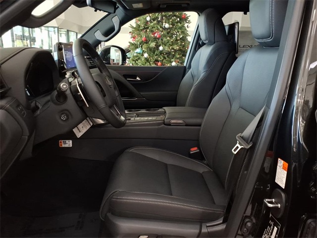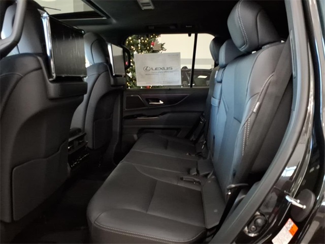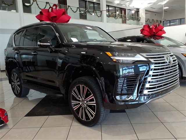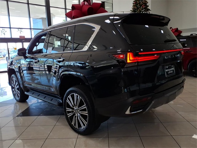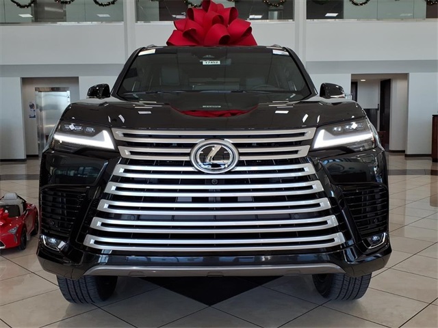 This Lexus LX is equipped with the following features: Accessory Package, Luxury Package, 20 Leather, 10-Way Heated and Ventilated Front Bucket Seats, 3rd row seats: split-bench, 4-Wheel Disc Brakes, ABS brakes, Adaptive suspension, Air Conditioning, All-Weather Cargo Mat, All-Weather Floor Liners - Off Road, Alloy wheels, AM/FM radio: SiriusXM, Apple CarPlay/Android Auto, Auto High-beam Headlights, Auto tilt-away steering wheel, Auto-dimming door mirrors, Auto-dimming Rear-View mirror, Auto-leveling suspension, Automatic temperature control, Brake assist, Bumpers: body-color, Cargo Net, Carpet Cargo Mat, Compass, Delay-off headlights, Driver door bin, Driver vanity mirror, Dual front impact airbags, Dual front side impact airbags, Electronic Stability Control, Emergency communication system: Safety Connect (5-year minimum), Exterior Parking Camera Rear, Front anti-roll bar, Front Bucket Seats, Front Center Armrest, Front dual zone A/C, Front fog lights, Front reading lights, Front wheel independent suspension, Fully automatic headlights, Garage door transmitter: HomeLink, Genuine wood console insert, Genuine wood door panel insert, Headlight cleaning, Heads-Up Display, Heated door mirrors, Heated front seats, Heated rear seats, Heated steering wheel, Illuminated entry, Leather Shift Knob, Leather steering wheel, Lexus Interface with 12.3" Touchscreen Display, Low tire pressure warning, Mark Levinson 25-Speaker Premium Surround Sound, Memory seat, Navigation System, Occupant sensing airbag, Outside temperature display, Overhead airbag, Overhead console, Panic alarm, Passenger door bin, Passenger vanity mirror, Power door mirrors, Power driver seat, Power Liftgate, Power moonroof, Power passenger seat, Power steering, Power windows, Radio data system, Radio: Mark Levinson 25-Speaker Surround Sound System, Rain sensing wipers, Rear air conditioning, Rear dual zone A/C, Rear reading lights, Rear seat center armrest, Rear Seat Entertainment System with Dual 11.4" Screen, Rear side impact airbag, Rear window defroster, Rear window wiper, Reclining 3rd row seat, Remote keyless entry, Security system, Semi-Aniline Leather Seat Trim, Speed control, Speed-sensing steering, Split folding rear seat, Spoiler, Steering wheel memory, Steering wheel mounted audio controls, Tachometer, Telescoping steering wheel, Tilt steering wheel, Traction control, Trip computer, Turn signal indicator mirrors, Variably intermittent wipers, Ventilated front seats, Ventilated rear seats, Voltmeter, and Wheels: 22" Forged Alloy with Machined Finish.