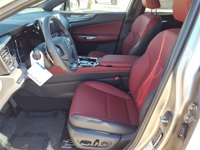 This Lexus NX is equipped with the following features: Accessory Package (2T) (All-Weather Cargo Mat and All-Weather Floor Liners), Cold Area Package (Heated Steering Wheel), Premium Package, 10 Speakers, 4-Wheel Disc Brakes, ABS brakes, Air Conditioning, Alloy Wheel Locks w/Triple Nickel Chrome Plating, Alloy wheels, AM/FM radio: SiriusXM, Auto High-beam Headlights, Auto tilt-away steering wheel, Auto-dimming door mirrors, Auto-dimming Rear-View mirror, Automatic temperature control, Brake assist, Bumpers: body-color, Delay-off headlights, Digital Key & SmartAccess Key Card, Driver door bin, Driver vanity mirror, Dual front impact airbags, Dual front side impact airbags, Electronic Stability Control, Emergency communication system: Safety Connect (up to 10-year trial subscription included), Exterior Parking Camera Rear, Four wheel independent suspension, Front anti-roll bar, Front Bucket Seats, Front Center Armrest, Front Cross-Traffic Alert & Lane Change Assist, Front dual zone A/C, Front fog lights, Front reading lights, Fully automatic headlights, Garage door transmitter: HomeLink, Heated & Ventilated Front Seats, Heated door mirrors, Heated front seats, Illuminated Door Sills w/Lexus Logo, Illuminated entry, Knee airbag, Leather Shift Knob, Leather steering wheel, Lexus Interface w/14" Touchscreen Display, Lexus Interface w/9.8" Touchscreen Display, Low tire pressure warning, Memory seat, Mudguards, Navigation system: Drive Connect Cloud Navigation (subscription required), NuLuxe Seat Trim, Occupant sensing airbag, Outside temperature display, Overhead airbag, Overhead console, Panic alarm, Panoramic View Monitor, Passenger door bin, Passenger vanity mirror, Power door mirrors, Power driver seat, Power Liftgate, Power moonroof, Power passenger seat, Power steering, Power windows, Radio data system, Radio: 10-Speaker Lexus Premium Sound System, Rain sensing wipers, Rear anti-roll bar, Rear Bumper Protector, Rear reading lights, Rear seat center armrest, Rear window defroster, Rear window wiper, Remote keyless entry, Security system, Speed control, Speed-sensing steering, Speed-Sensitive Wipers, Split folding rear seat, Spoiler, Steering wheel memory, Steering wheel mounted audio controls, Tachometer, Telescoping steering wheel, Thematic Ambient Illumination, Tilt steering wheel, Traction control, Trip computer, Turn signal indicator mirrors, Variably intermittent wipers, Ventilated front seats, Wheels: 18" 15-Spoke Alloy, Wireless Apple CarPlay/Wireless Android Auto, and Wireless Phone Charger.