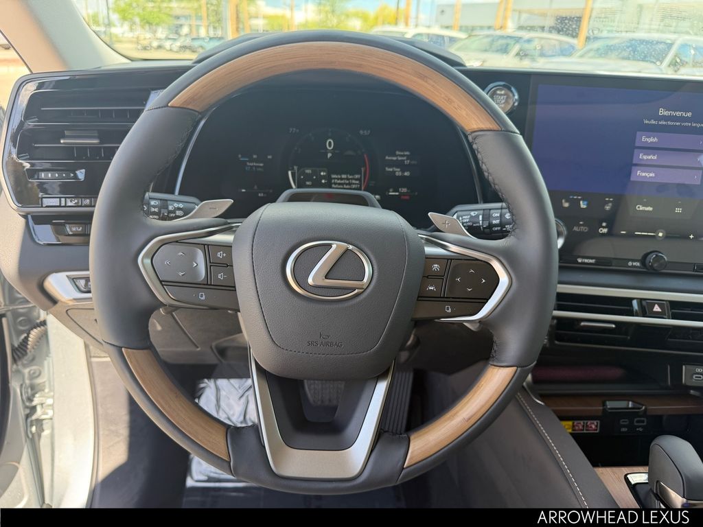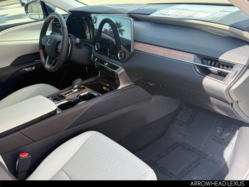 This Lexus RX is equipped with the following features: Convenience Package (Front Cross-Traffic Alert and Lane Change Assist), Premium+ Grade, Technology Package (10" Color Head-Up Display and Digital Rearview Mirror), 02 Leather, 12 Speakers, 4-Wheel Disc Brakes, ABS brakes, Air Conditioning, Alloy wheels, AM/FM radio: SiriusXM, Anti-whiplash front head restraints, Auto High-beam Headlights, Auto tilt-away steering wheel, Auto-dimming door mirrors, Auto-dimming Rear-View mirror, Automatic temperature control, Brake assist, Bumpers: body-color, Compass, Delay-off headlights, Driver door bin, Driver vanity mirror, Dual front impact airbags, Dual front side impact airbags, Electronic Stability Control, Emergency communication system: Safety Connect (5-year minimum), Exterior Parking Camera Rear, Four wheel independent suspension, Front anti-roll bar, Front Bucket Seats, Front Center Armrest, Front dual zone A/C, Front fog lights, Front reading lights, Fully automatic headlights, Garage door transmitter: HomeLink, Genuine wood console insert, Heated and Ventilated Front Seats, Heated door mirrors, Heated front seats, Heated steering wheel, Illuminated entry, Leather Shift Knob, Leather steering wheel, Lexus Interface with 14" Touchscreen Display, Low tire pressure warning, Memory seat, Navigation System, Occupant sensing airbag, Outside temperature display, Overhead airbag, Overhead console, Panic alarm, Passenger door bin, Passenger vanity mirror, Perforated Leather Seat Trim, Power door mirrors, Power driver seat, Power Liftgate, Power passenger seat, Power Rear Door with Kick Sensor, Power steering, Power Tilt and Slide Moonroof, Power windows, Radio data system, Radio: 12-Speaker Lexus Premium Sound System, Rain sensing wipers, Rear air conditioning, Rear anti-roll bar, Rear reading lights, Rear seat center armrest, Rear side impact airbag, Rear window defroster, Rear window wiper, Remote keyless entry, Security system, Speed control, Speed-sensing steering, Split folding rear seat, Spoiler, Steering wheel memory, Steering wheel mounted audio controls, Tachometer, Telescoping steering wheel, Tilt steering wheel, Traction control, Trip computer, Turn signal indicator mirrors, Variably intermittent wipers, Ventilated front seats, Wheels: 21" 20-Spoke Alloy, and Wireless Apple CarPlay/Wireless Android Auto.
