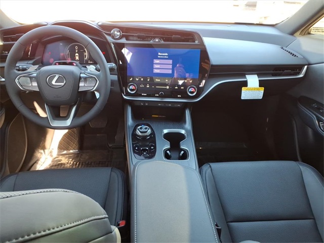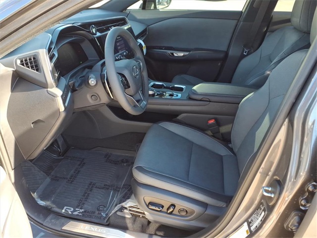 This Lexus RZ is equipped with the following features: Accessory Package (2T) (All-Weather Cargo Mat and All-Weather Floor Liners), Cold Area Package (Headlamp Washers and Windshield Wiper De-Icer), Convenience Package (Advanced Park w/Remote Park, Front Cross-Traffic Alert & Lane Change Assist, and Traffic Jam Assist), Technology Package (10" Head-Up Display, Digital Key, and Digital Rearview Mirror), 10 Speakers, 18" 5-Spoke Alloy Wheels, 4-Wheel Disc Brakes, ABS brakes, Air Conditioning, Alloy wheels, AM/FM radio: SiriusXM, Apple CarPlay/Android Auto, Auto High-beam Headlights, Auto-dimming door mirrors, Auto-dimming Rear-View mirror, Automatic temperature control, Brake assist, Bumpers: body-color, Delay-off headlights, Driver door bin, Driver vanity mirror, Dual front impact airbags, Dual front side impact airbags, Electronic Stability Control, Emergency communication system: Safety Connect (5-year minimum), Exterior Parking Camera Rear, Four wheel independent suspension, Front anti-roll bar, Front Bucket Seats, Front Center Armrest, Front dual zone A/C, Front Radiant Heater, Front reading lights, Fully automatic headlights, Heated & Ventilated Front Seats, Heated door mirrors, Heated front seats, Heated steering wheel, Illuminated Door Sills w/Lexus Logo, Illuminated entry, Knee airbag, Lexus Interface w/14" Touchscreen Display, Low tire pressure warning, Memory seat, Navigation System, NuLuxe Seat Trim, Occupant sensing airbag, Outside temperature display, Overhead airbag, Overhead console, Panic alarm, Passenger door bin, Passenger vanity mirror, Power door mirrors, Power driver seat, Power Liftgate, Power passenger seat, Power steering, Power windows, Radio data system, Radio: Lexus 10-Speaker Premium Sound System, Rain sensing wipers, Rear anti-roll bar, Rear seat center armrest, Rear window defroster, Remote keyless entry, Roof Sunshade for Panoramic Roof, Security system, Speed control, Speed-sensing steering, Split folding rear seat, Steering wheel memory, Steering wheel mounted audio controls, Telescoping steering wheel, Tilt steering wheel, Traction control, Trip computer, Turn signal indicator mirrors, Variably intermittent wipers, and Ventilated front seats.