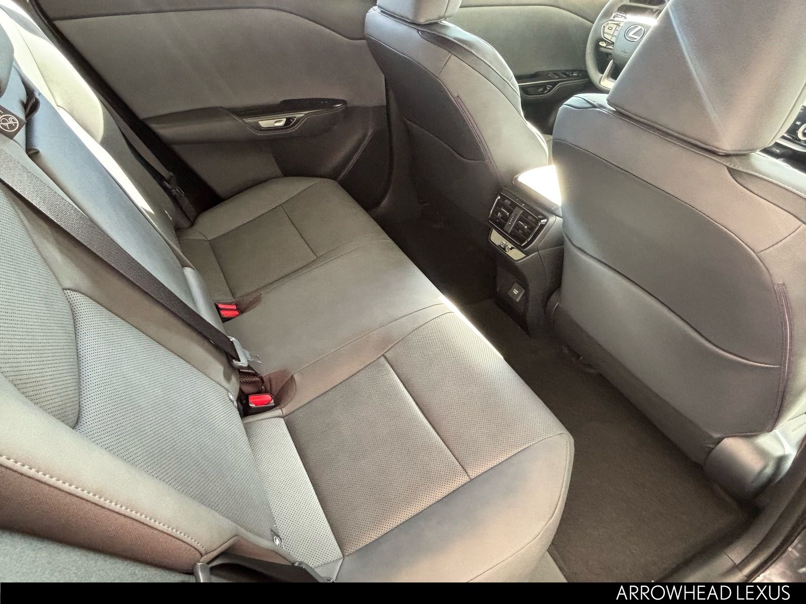 This Lexus RZ is equipped with the following features: Accessory Package, Base Grade, 10 Speakers, 18" 5-Spoke Alloy Wheels, 4-Wheel Disc Brakes, ABS brakes, Air Conditioning, All-Weather Cargo Mat, All-Weather Floor Liners, Alloy wheels, AM/FM radio: SiriusXM, Apple CarPlay/Android Auto, Auto High-beam Headlights, Auto-dimming door mirrors, Auto-dimming Rear-View mirror, Automatic temperature control, Brake assist, Bumpers: body-color, Cargo Net, Delay-off headlights, Driver door bin, Driver vanity mirror, Dual front impact airbags, Dual front side impact airbags, Electronic Stability Control, Emergency communication system: Safety Connect (5-year minimum), Exterior Parking Camera Rear, Four wheel independent suspension, Front anti-roll bar, Front Bucket Seats, Front Center Armrest, Front dual zone A/C, Front reading lights, Fully automatic headlights, Heated and Ventilated Front Seats, Heated door mirrors, Heated front seats, Heated steering wheel, Illuminated entry, Key Gloves with Embossed Lexus Logo, Knee airbag, Lexus Interface with 14" Touchscreen Display, Low tire pressure warning, Memory seat, Navigation System, NuLuxe Seat Trim, Occupant sensing airbag, Outside temperature display, Overhead airbag, Overhead console, Panic alarm, Passenger door bin, Passenger vanity mirror, Power door mirrors, Power driver seat, Power Liftgate, Power passenger seat, Power steering, Power windows, Radio data system, Radio: Lexus 10-Speaker Premium Sound System, Rain sensing wipers, Rear anti-roll bar, Rear Parking Sensors, Rear seat center armrest, Rear window defroster, Remote keyless entry, Security system, Speed control, Speed-sensing steering, Split folding rear seat, Steering wheel memory, Steering wheel mounted audio controls, Telescoping steering wheel, Tilt steering wheel, Traction control, Trip computer, Turn signal indicator mirrors, Variably intermittent wipers, and Ventilated front seats.