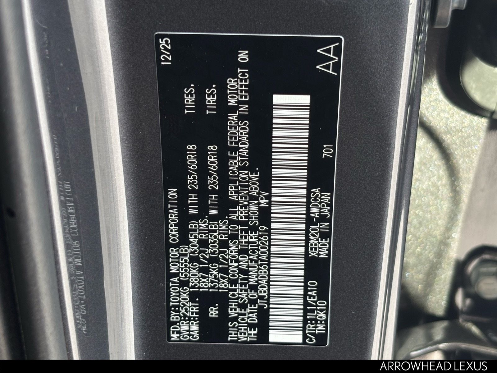 - VIN : JTJBDADB6TA002619