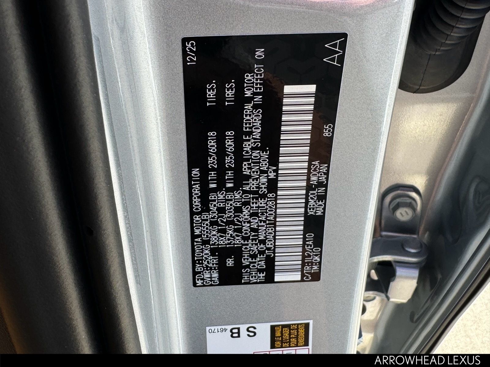 - VIN : JTJBDADB1TA002818