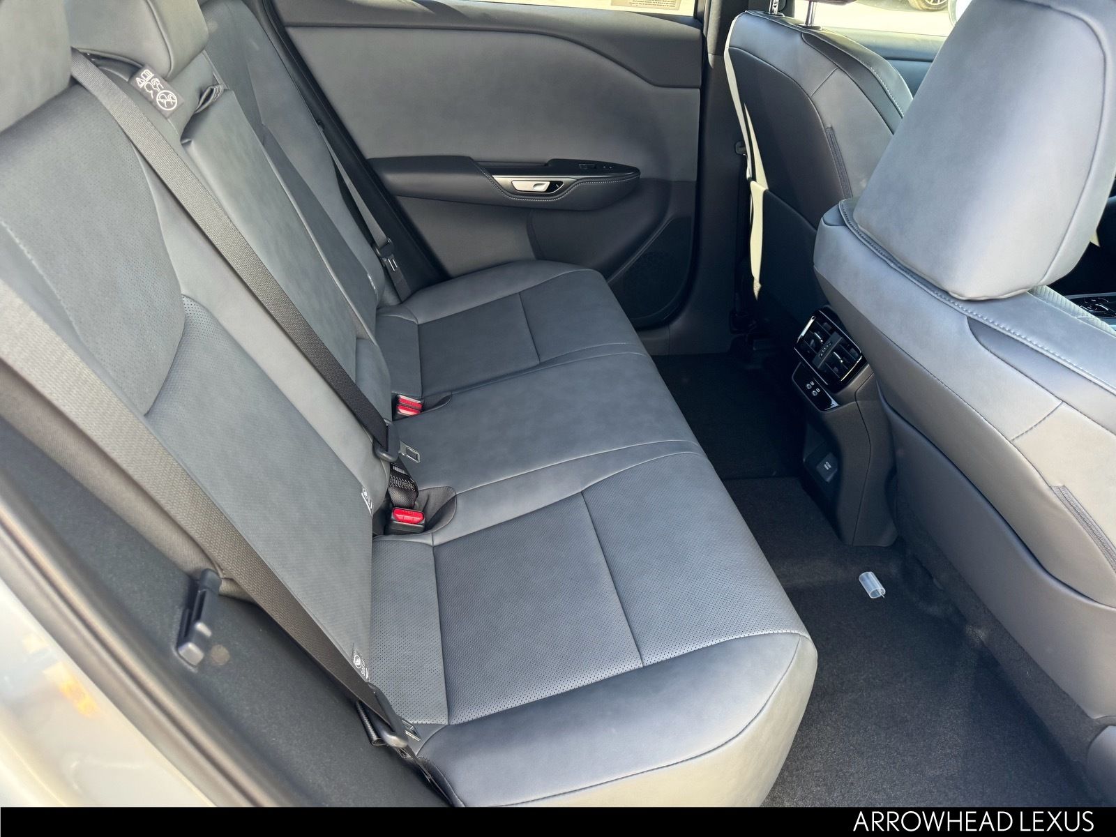 This Lexus RZ is equipped with the following features: Accessory Package, Base Grade, 10 Speakers, 18" 5-Spoke Alloy Wheels, 4-Wheel Disc Brakes, ABS brakes, Air Conditioning, All-Weather Cargo Mat, All-Weather Floor Liners, Alloy Wheel Locks with Triple Nickel Chrome Plating, Alloy wheels, AM/FM radio: SiriusXM, Apple CarPlay/Android Auto, Auto High-beam Headlights, Auto-dimming door mirrors, Auto-dimming Rear-View mirror, Automatic temperature control, Black Emblem Overlays, Brake assist, Bumpers: body-color, Cargo Net, Delay-off headlights, Door Edge Film by 3M, Driver door bin, Driver vanity mirror, Dual front impact airbags, Dual front side impact airbags, Electronic Stability Control, Emergency communication system: Safety Connect (5-year minimum), Exterior Parking Camera Rear, Four wheel independent suspension, Front anti-roll bar, Front Bucket Seats, Front Center Armrest, Front dual zone A/C, Front reading lights, Fully automatic headlights, Heated and Ventilated Front Seats, Heated door mirrors, Heated front seats, Heated steering wheel, Illuminated entry, Key Gloves with Embossed Lexus Logo, Knee airbag, Lexus Interface with 14" Touchscreen Display, Low tire pressure warning, Memory seat, Navigation System, NuLuxe Seat Trim, Occupant sensing airbag, Outside temperature display, Overhead airbag, Overhead console, Paint Protection Film by 3M, Panic alarm, Passenger door bin, Passenger vanity mirror, Power door mirrors, Power driver seat, Power Liftgate, Power passenger seat, Power steering, Power windows, Radio data system, Radio: Lexus 10-Speaker Premium Sound System, Rain sensing wipers, Rear anti-roll bar, Rear Parking Sensors, Rear seat center armrest, Rear window defroster, Remote keyless entry, Security system, Speed control, Speed-sensing steering, Split folding rear seat, Steering wheel memory, Steering wheel mounted audio controls, Telescoping steering wheel, Tilt steering wheel, Traction control, Trip computer, Turn signal indicator mirrors, Variably intermittent wipers, and Ventilated front seats.