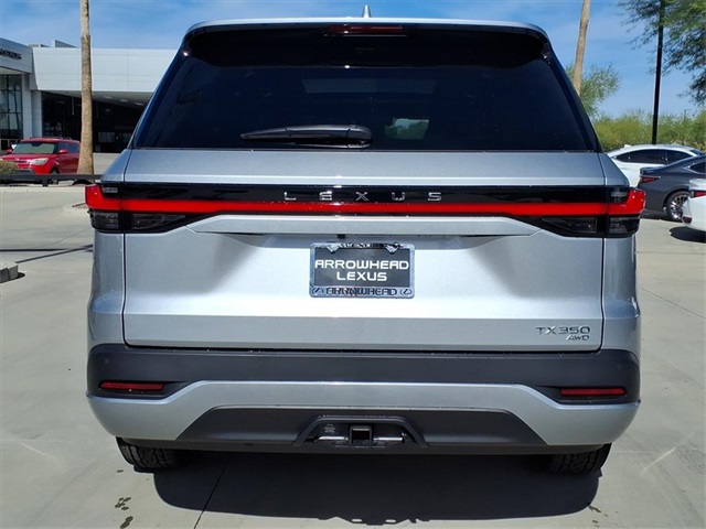 This Lexus TX is equipped with the following features: Accessory Package (2T) (All-Weather Cargo Mat and All-Weather Floor Liners), Convenience Package (Digital Key, Front Cross-Traffic Alert & Lane Change Assist, and Traffic Jam Assist), 12 Speakers, 20" Wheels, 3rd row seats: split-bench, 4-Wheel Disc Brakes, ABS brakes, Air Conditioning, Alloy wheels, AM/FM radio, Apple CarPlay/Android Auto, Auto High-beam Headlights, Auto tilt-away steering wheel, Auto-dimming door mirrors, Auto-dimming Rear-View mirror, Automatic temperature control, Brake assist, Bumpers: body-color, Delay-off headlights, Door Edge Film by 3M, Driver door bin, Driver vanity mirror, Dual front impact airbags, Dual front side impact airbags, Electronic Stability Control, Emergency Assistance Kit, Emergency communication system: Safety Connect (5-year minimum), Exterior Parking Camera Rear, Four wheel independent suspension, Front & Rear Mudguards, Front anti-roll bar, Front Bucket Seats, Front Center Armrest, Front dual zone A/C, Front fog lights, Front reading lights, Fully automatic headlights, Garage door transmitter: HomeLink, Heated door mirrors, Heated Front Seats, Heated front seats, Heated steering wheel, Illuminated Door Sills w/Lexus Logo, Illuminated entry, Key Gloves w/Embossed Lexus Logo, Knee airbag, Leather Shift Knob, Leather steering wheel, Lexus Interface w/14" Touchscreen Display, Low tire pressure warning, Navigation system: Drive Connect Cloud Navigation (3-year trial subscription included), NuLuxe Seat Trim, Occupant sensing airbag, Outside temperature display, Overhead airbag, Panic alarm, Passenger door bin, Passenger vanity mirror, Power door mirrors, Power driver seat, Power Liftgate, Power passenger seat, Power steering, Power windows, Radio data system, Radio: 12-Speaker Lexus Premium Sound System, Rain sensing wipers, Rear air conditioning, Rear anti-roll bar, Rear Hatch Cargo Lamps, Rear reading lights, Rear seat center armrest, Rear window defroster, Rear window wiper, Reclining 3rd row seat, Remote keyless entry, Security system, Speed control, Speed-sensing steering, Split folding rear seat, Spoiler, Steering wheel mounted audio controls, Tachometer, Telescoping steering wheel, Tilt steering wheel, Tow Hitch Receiver, Traction control, Trip computer, Turn signal indicator mirrors, Variably intermittent wipers, and Wheels: 20" Multispoke Alloy.