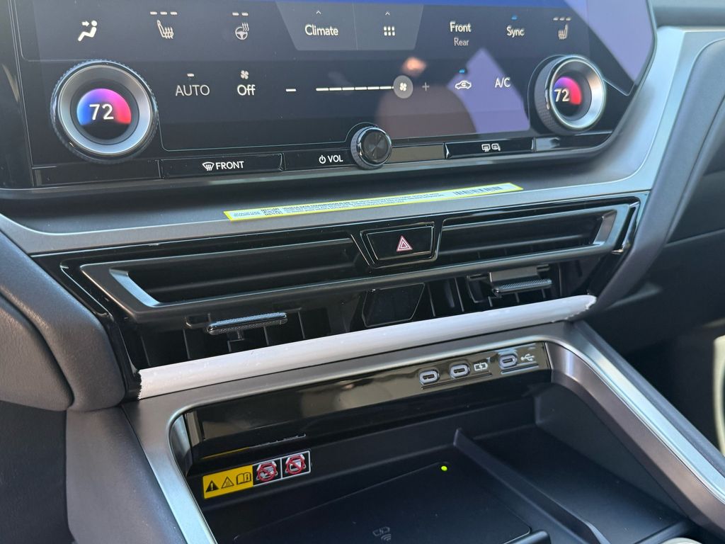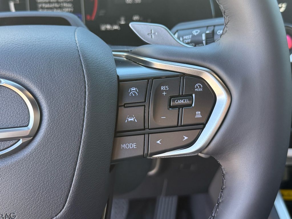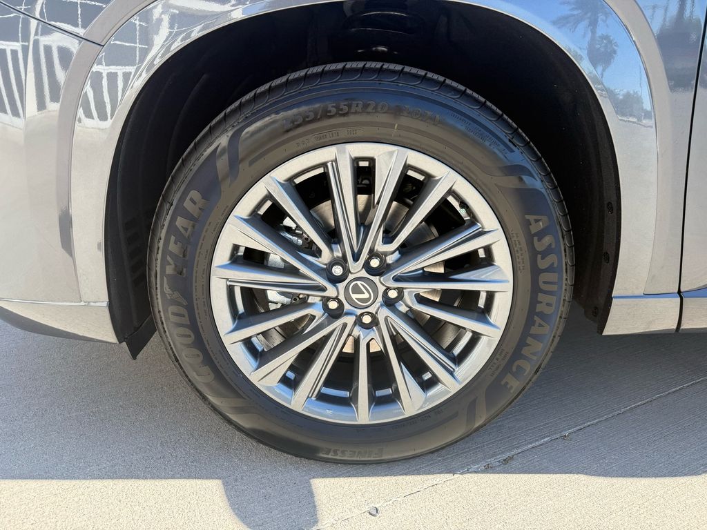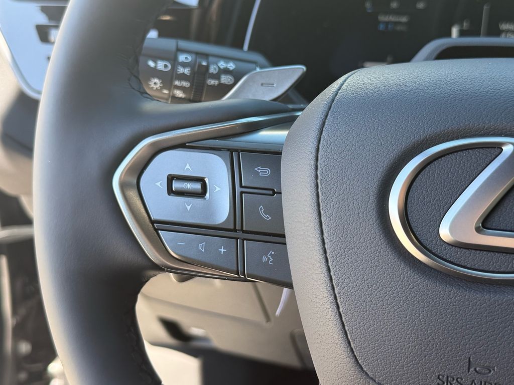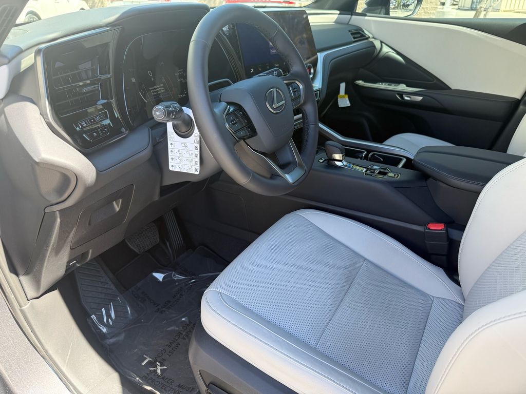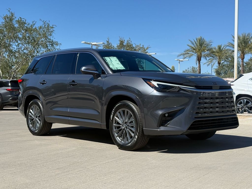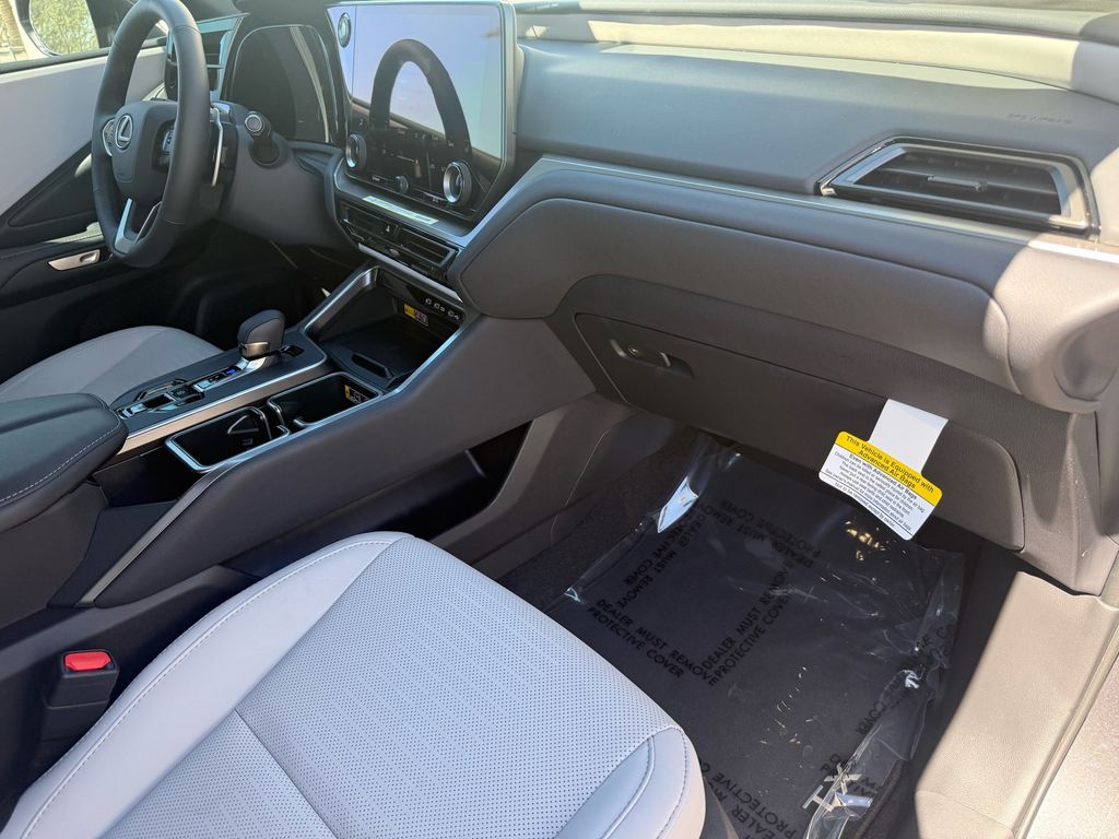 This Lexus TX is equipped with the following features: Birch Interior Package, Convenience Package (Digital Key, Front Cross-Traffic Alert and Lane Change Assist, and Traffic Jam Assist), 12 Speakers, 20" Wheels, 3rd row seats: split-bench, 4-Wheel Disc Brakes, ABS brakes, Air Conditioning, Alloy wheels, AM/FM radio, Apple CarPlay/Android Auto, Auto High-beam Headlights, Auto tilt-away steering wheel, Auto-dimming door mirrors, Auto-dimming Rear-View mirror, Automatic temperature control, Black Emblem Overlays, Brake assist, Bumpers: body-color, Delay-off headlights, Driver door bin, Driver vanity mirror, Dual front impact airbags, Dual front side impact airbags, Electronic Stability Control, Emergency communication system: Safety Connect (5-year minimum), Exterior Parking Camera Rear, Four wheel independent suspension, Front anti-roll bar, Front Bucket Seats, Front Center Armrest, Front dual zone A/C, Front fog lights, Front reading lights, Fully automatic headlights, Garage door transmitter: HomeLink, Heated door mirrors, Heated Front Seats, Heated front seats, Heated steering wheel, Illuminated entry, Knee airbag, Leather Shift Knob, Leather steering wheel, Lexus Interface with 14" Touchscreen Display, Lexus Multimedia Screen Protector, Low tire pressure warning, Navigation system: Drive Connect Cloud Navigation (3-year trial subscription included), NuLuxe Seat Trim, Occupant sensing airbag, Outside temperature display, Overhead airbag, Panic alarm, Passenger door bin, Passenger vanity mirror, Power door mirrors, Power driver seat, Power Liftgate, Power passenger seat, Power steering, Power windows, Radio data system, Radio: 12-Speaker Lexus Premium Sound System, Rain sensing wipers, Rear air conditioning, Rear anti-roll bar, Rear Hatch Cargo Lamps, Rear reading lights, Rear seat center armrest, Rear window defroster, Rear window wiper, Reclining 3rd row seat, Remote keyless entry, Security system, Speed control, Speed-sensing steering, Split folding rear seat, Spoiler, Steering wheel mounted audio controls, Tachometer, Telescoping steering wheel, Tilt steering wheel, Traction control, Trip computer, Turn signal indicator mirrors, Variably intermittent wipers, and Wheels: 20" Multispoke Alloy.