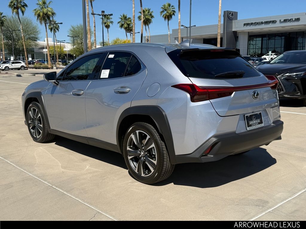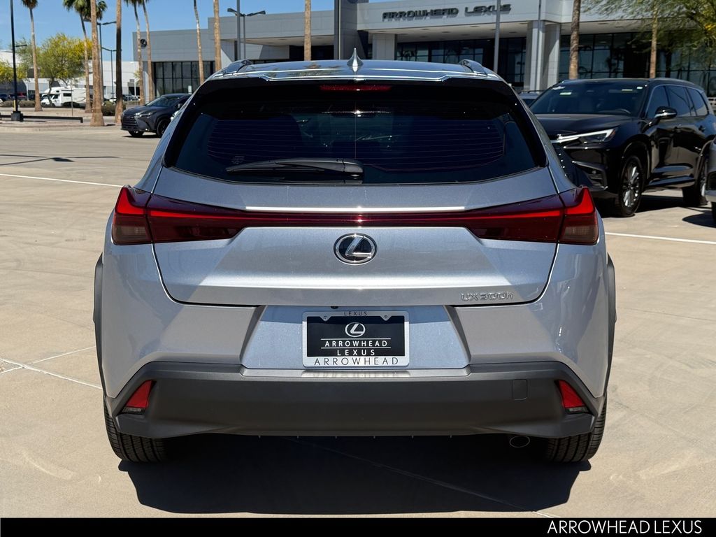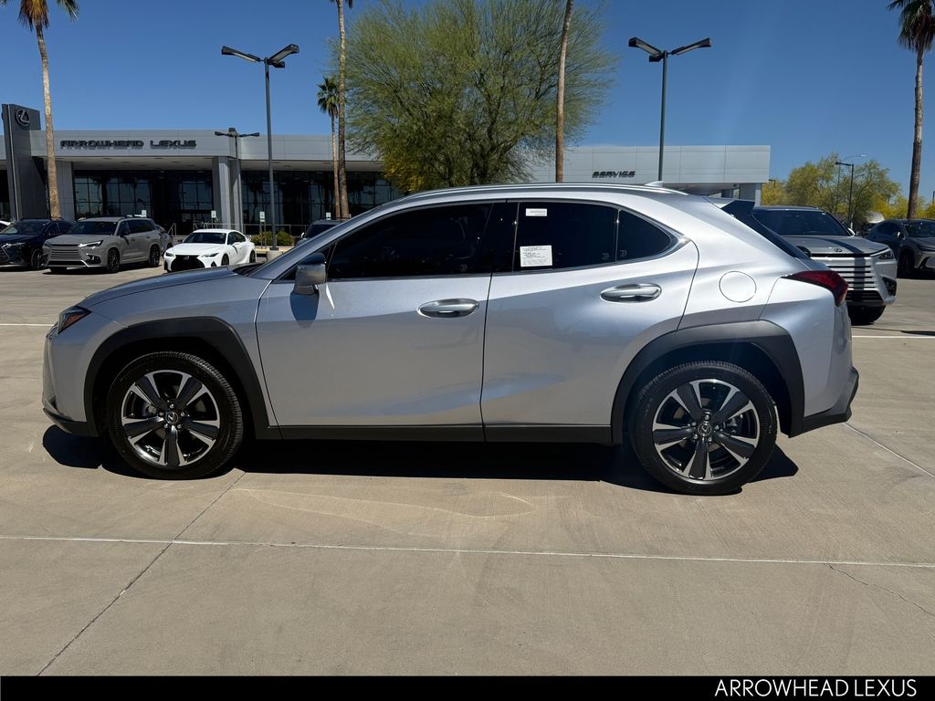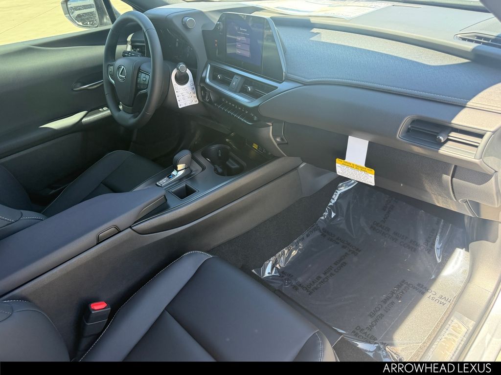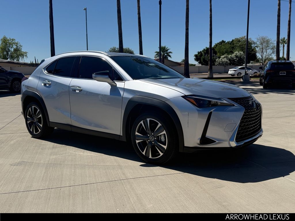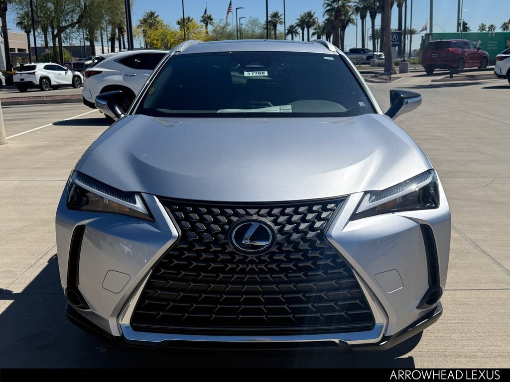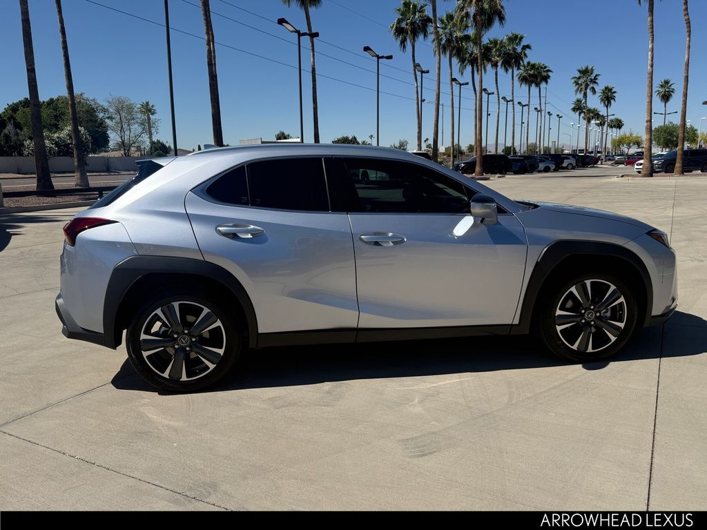 This Lexus UX is equipped with the following features: 2.0L I4 DOHC 16V, 18" 5-Spoke Alloy Wheels, 4-Wheel Disc Brakes, 6 Speakers, ABS brakes, Air Conditioning, Alloy wheels, AM/FM radio: SiriusXM, Apple CarPlay/Android Auto, Auto High-beam Headlights, Auto-Dimming Rear-View Mirror, Automatic temperature control, Brake assist, Bumpers: body-color, Compass, Delay-off headlights, Driver door bin, Driver vanity mirror, Dual front impact airbags, Dual front side impact airbags, Electronic Stability Control, Emergency communication system: Safety Connect (10-year trial), Exterior Parking Camera Rear, Four wheel independent suspension, Front anti-roll bar, Front Bucket Seats, Front Center Armrest, Front dual zone A/C, Front reading lights, Front Seats, Fully automatic headlights, Heated door mirrors, Illuminated Door Sills, Illuminated entry, Knee airbag, Leather Shift Knob, Leather steering wheel, Lexus Interface with 8.0" Touchscreen Display, Low tire pressure warning, NuLuxe Seat Trim, Occupant sensing airbag, Outside temperature display, Overhead airbag, Panic alarm, Passenger door bin, Passenger vanity mirror, Power door mirrors, Power driver seat, Power passenger seat, Power Rear Door with Kick Sensor, Power steering, Power Tilt and Slide Moonroof, Power windows, Radio data system, Radio: 6-Speaker Lexus Premium Sound System, Rear anti-roll bar, Rear Parking Sensors, Rear reading lights, Rear side impact airbag, Rear window defroster, Rear window wiper, Remote keyless entry, Security system, Speed control, Speed-sensing steering, Split folding rear seat, Spoiler, Steering wheel mounted audio controls, Tachometer, Telescoping steering wheel, Tilt steering wheel, Traction control, Trip computer, Turn signal indicator mirrors, Variably intermittent wipers, and Wireless Charger.