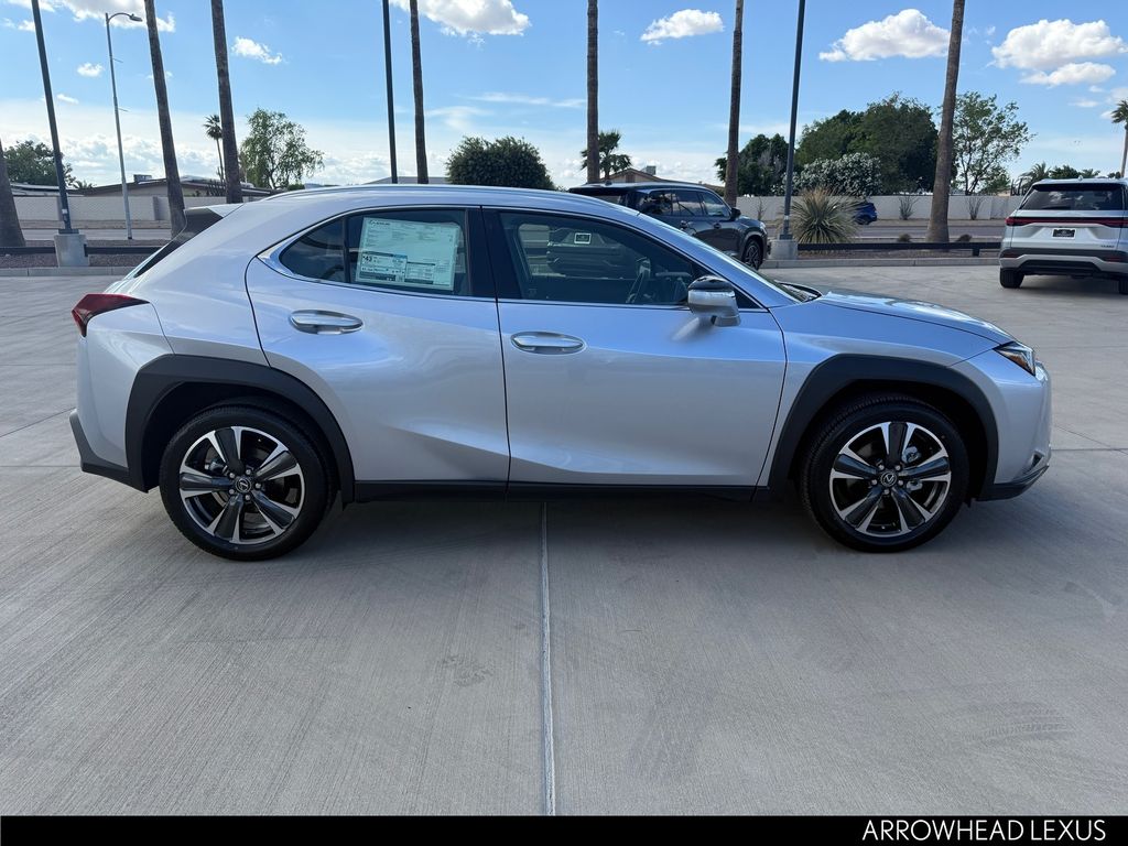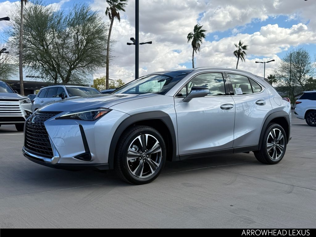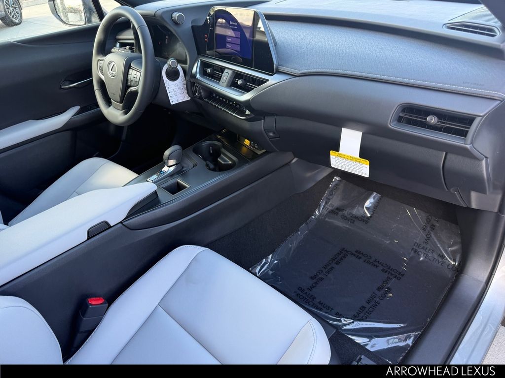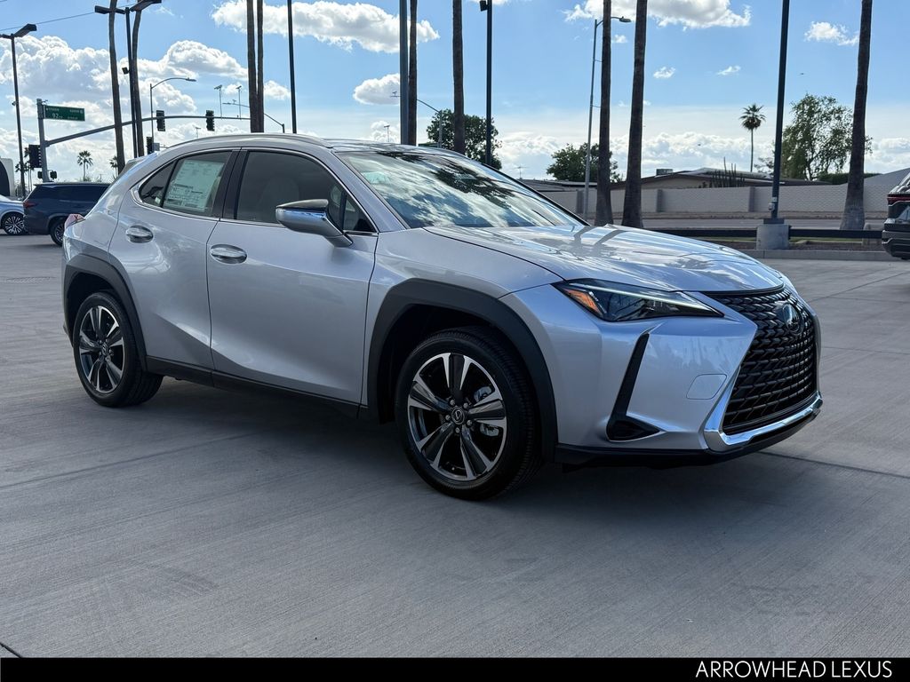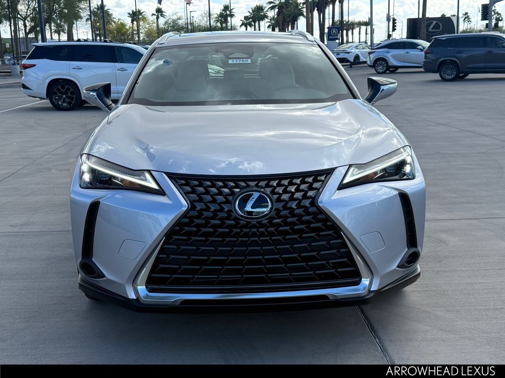 This Lexus UX is equipped with the following features: 2.0L I4 DOHC 16V, 18" 5-Spoke Alloy Wheels, 4-Wheel Disc Brakes, 6 Speakers, ABS brakes, Air Conditioning, Alloy wheels, AM/FM radio: SiriusXM, Apple CarPlay/Android Auto, Auto High-beam Headlights, Auto-Dimming Rear-View Mirror, Automatic temperature control, Brake assist, Bumpers: body-color, Compass, Delay-off headlights, Driver door bin, Driver vanity mirror, Dual front impact airbags, Dual front side impact airbags, Electronic Stability Control, Emergency communication system: Safety Connect (10-year trial), Exterior Parking Camera Rear, Four wheel independent suspension, Front anti-roll bar, Front Bucket Seats, Front Center Armrest, Front dual zone A/C, Front reading lights, Front Seats, Fully automatic headlights, Heated door mirrors, Illuminated Door Sills, Illuminated entry, Knee airbag, Leather Shift Knob, Leather steering wheel, Lexus Interface with 8.0" Touchscreen Display, Low tire pressure warning, NuLuxe Seat Trim, Occupant sensing airbag, Outside temperature display, Overhead airbag, Panic alarm, Passenger door bin, Passenger vanity mirror, Power door mirrors, Power driver seat, Power passenger seat, Power Rear Door with Kick Sensor, Power steering, Power Tilt and Slide Moonroof, Power windows, Radio data system, Radio: 6-Speaker Lexus Premium Sound System, Rear anti-roll bar, Rear Parking Sensors, Rear reading lights, Rear side impact airbag, Rear window defroster, Rear window wiper, Remote keyless entry, Security system, Speed control, Speed-sensing steering, Split folding rear seat, Spoiler, Steering wheel mounted audio controls, Tachometer, Telescoping steering wheel, Tilt steering wheel, Traction control, Trip computer, Turn signal indicator mirrors, Variably intermittent wipers, and Wireless Charger.