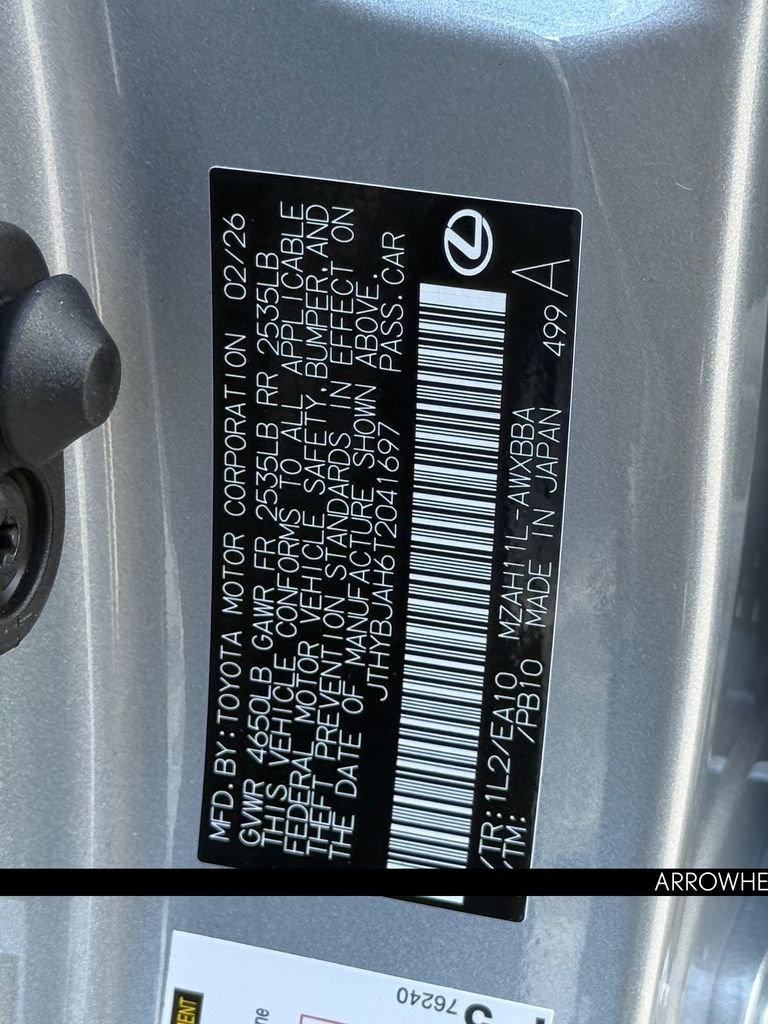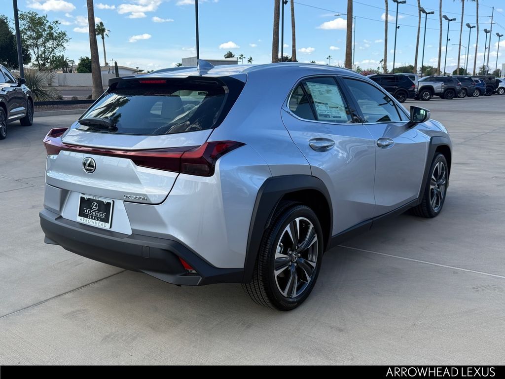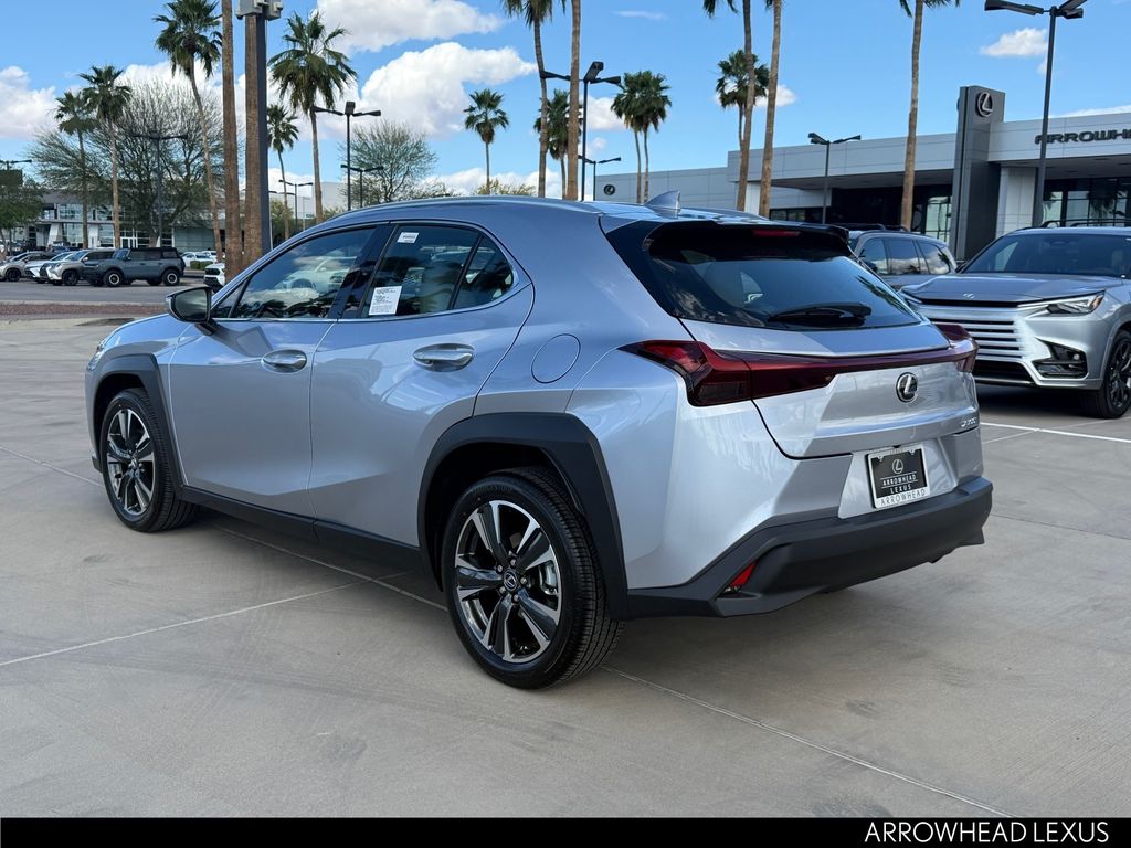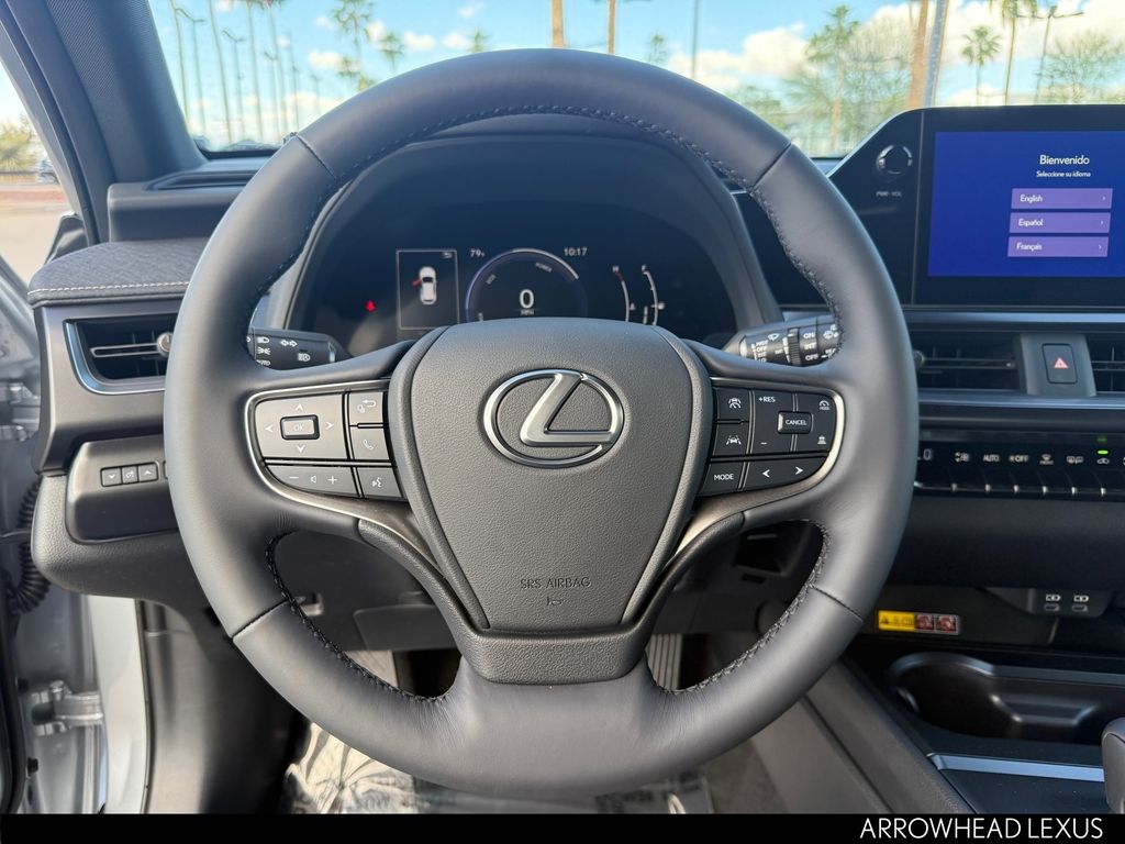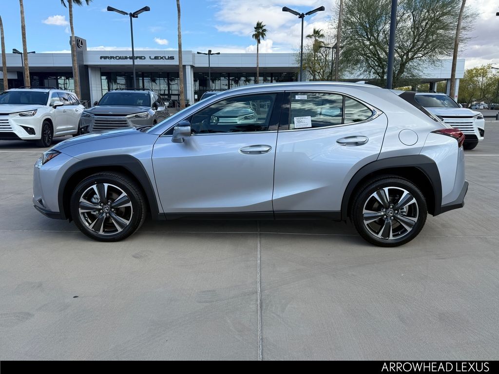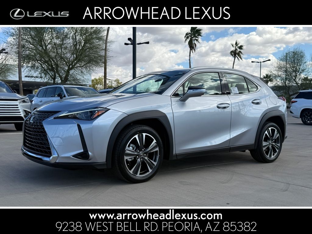 This Lexus UX is equipped with the following features: 2.0L I4 DOHC 16V, 18" 5-Spoke Alloy Wheels, 4-Wheel Disc Brakes, 6 Speakers, ABS brakes, Air Conditioning, Alloy wheels, AM/FM radio: SiriusXM, Apple CarPlay/Android Auto, Auto High-beam Headlights, Auto-Dimming Rear-View Mirror, Automatic temperature control, Brake assist, Bumpers: body-color, Compass, Delay-off headlights, Driver door bin, Driver vanity mirror, Dual front impact airbags, Dual front side impact airbags, Electronic Stability Control, Emergency communication system: Safety Connect (10-year trial), Exterior Parking Camera Rear, Four wheel independent suspension, Front anti-roll bar, Front Bucket Seats, Front Center Armrest, Front dual zone A/C, Front reading lights, Front Seats, Fully automatic headlights, Heated door mirrors, Illuminated Door Sills, Illuminated entry, Knee airbag, Leather Shift Knob, Leather steering wheel, Lexus Interface with 8.0" Touchscreen Display, Low tire pressure warning, NuLuxe Seat Trim, Occupant sensing airbag, Outside temperature display, Overhead airbag, Panic alarm, Passenger door bin, Passenger vanity mirror, Power door mirrors, Power driver seat, Power passenger seat, Power Rear Door with Kick Sensor, Power steering, Power Tilt and Slide Moonroof, Power windows, Radio data system, Radio: 6-Speaker Lexus Premium Sound System, Rear anti-roll bar, Rear Parking Sensors, Rear reading lights, Rear side impact airbag, Rear window defroster, Rear window wiper, Remote keyless entry, Security system, Speed control, Speed-sensing steering, Split folding rear seat, Spoiler, Steering wheel mounted audio controls, Tachometer, Telescoping steering wheel, Tilt steering wheel, Traction control, Trip computer, Turn signal indicator mirrors, Variably intermittent wipers, and Wireless Charger.