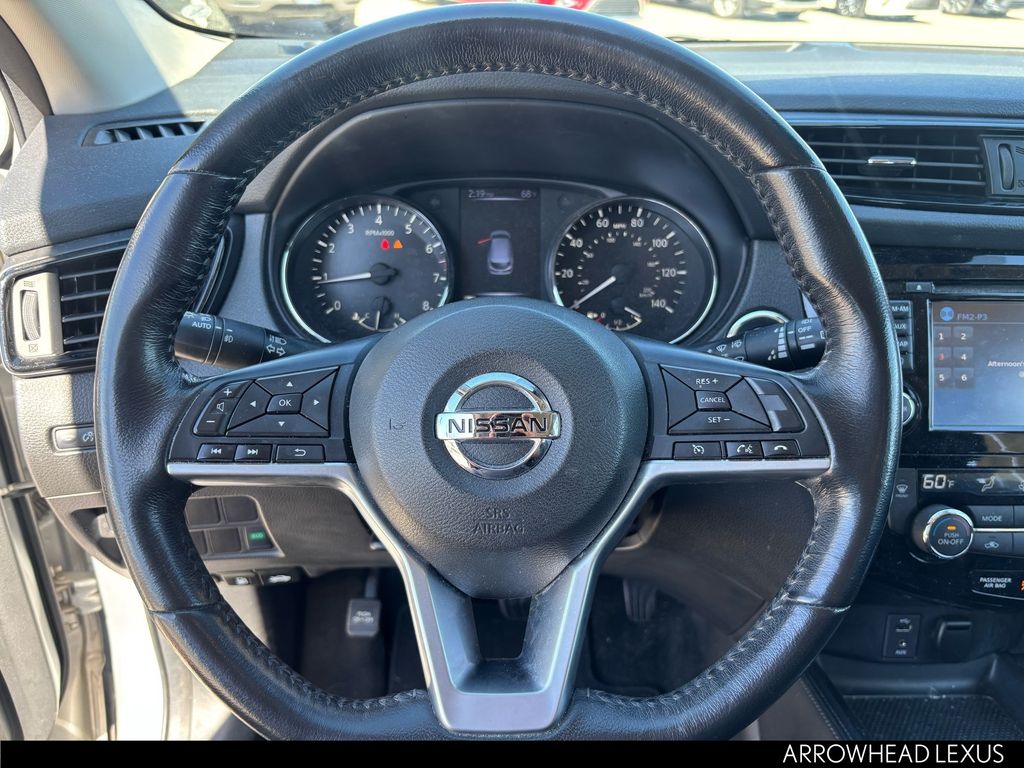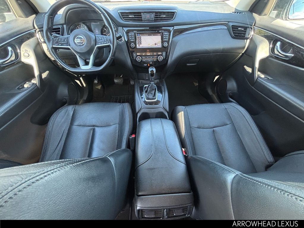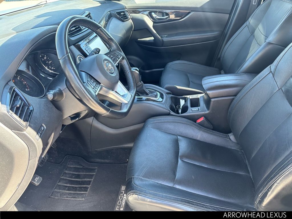 This Nissan Rogue Sport is equipped with the following features: SL Premium Package (Blind Spot Warning, Forward Emergency Braking, High Beam Assist (HBA), LED Low/High Beam Projector Headlights, Power Sliding Moonroof, and Rear Cross Traffic Alert (RCTA)), 4-Wheel Disc Brakes, 6 Speakers, ABS brakes, Activation Disclaimer, Air Conditioning, Alloy wheels, AM/FM radio: SiriusXM, Automatic temperature control, Black Splash Guards (Set of 4), Brake assist, Bumpers: body-color, Carpeted Floor Mats, CD player, Chrome Rear Bumper Protector, Delay-off headlights, Driver door bin, Driver vanity mirror, Dual front impact airbags, Dual front side impact airbags, Electronic Stability Control, Emergency communication system: NissanConnect Services, Four wheel independent suspension, Front anti-roll bar, Front Bucket Seats, Front Center Armrest, Front dual zone A/C, Front fog lights, Front reading lights, Fully automatic headlights, Heated door mirrors, Heated front seats, Heated steering wheel, Illuminated entry, Leather Appointed Seat Trim, Low tire pressure warning, Navigation System, Occupant sensing airbag, Outside temperature display, Overhead airbag, Overhead console, Panic alarm, Passenger door bin, Passenger vanity mirror, Power door mirrors, Power driver seat, Power steering, Power windows, Quick Comfort Heated Front Bucket Seats, Radio data system, Radio: AM/FM/CD/RDS/AUX NissanConnect w/Navigation, Rear anti-roll bar, Rear Cargo Protector (2-Pc Carpet), Rear seat center armrest, Rear window defroster, Rear window wiper, Remote keyless entry, Roof rack: rails only, Security system, Speed control, Speed-Sensitive Wipers, Split folding rear seat, Spoiler, Steering wheel mounted audio controls, Tachometer, TBD Axle Ratio, Telescoping steering wheel, Tilt steering wheel, Traction control, Trip computer, Turn signal indicator mirrors, Variably intermittent wipers, and Wheels: 19" x 7.0" Aluminum Alloy.