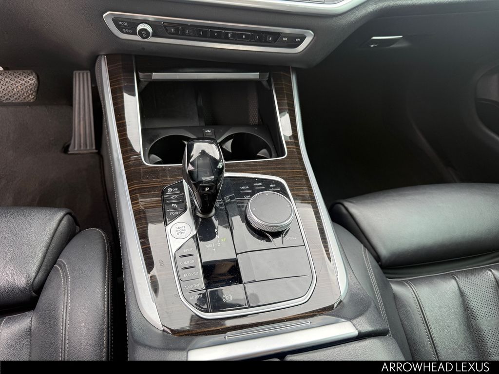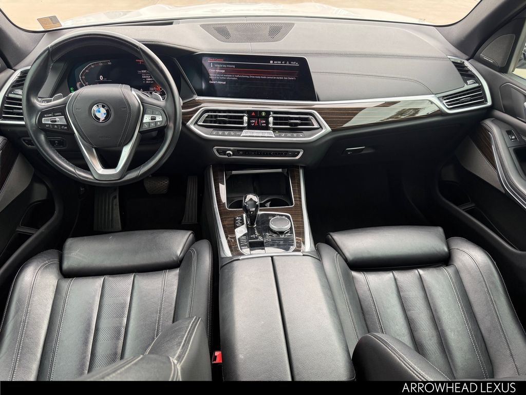 This BMW X5 is equipped with the following features: Convenience Package (4-Zone Automatic Climate Control, Enhanced USB & Bluetooth, SiriusXM Satellite Radio w/1 Year All Access, WiFi Hotspot, and Wireless Charging), Driving Assistance Professional Package (Active Driving Assistant Pro and Extended Traffic Jam Assistant), Premium Package (Gesture Control, Head-Up Display, and Remote Engine Start), Black Leather, 10 Speakers, 3.39 Axle Ratio, 4-Wheel Disc Brakes, ABS brakes, Active Park Distance Control, Air Conditioning, Alloy wheels, Aluminum Running Boards, AM/FM radio, AM/FM Stereo, Apple CarPlay Compatibility, Auto High-beam Headlights, Auto tilt-away steering wheel, Auto-dimming door mirrors, Auto-dimming Rear-View mirror, Automatic temperature control, Brake assist, Bumpers: body-color, Compass, Delay-off headlights, Driver door bin, Driver vanity mirror, Dual front impact airbags, Dual front side impact airbags, Electronic Stability Control, Emergency communication system: BMW Assist eCall, Exterior Parking Camera Rear, Four wheel independent suspension, Front anti-roll bar, Front Bucket Seats, Front Center Armrest, Front dual zone A/C, Front fog lights, Front reading lights, Fully automatic headlights, Garage door transmitter, Genuine wood console insert, Genuine wood dashboard insert, Genuine wood door panel insert, harman/kardon Surround Sound System, Head restraints memory, Heated door mirrors, Heated Front Seats, Heated front seats, Hi-Fi Sound System, Illuminated entry, Knee airbag, Leather Shift Knob, Leather steering wheel, Low tire pressure warning, Lumbar Support, Memory seat, Navigation System, Occupant sensing airbag, Outside temperature display, Overhead airbag, Panic alarm, Parking Assistant Plus, Passenger door bin, Passenger vanity mirror, Power adjustable front head restraints, Power door mirrors, Power driver seat, Power Front Seats, Power moonroof, Power passenger seat, Power steering, Power windows, Radio data system, Rain sensing wipers, Rear air conditioning, Rear anti-roll bar, Rear reading lights, Rear seat center armrest, Rear window defroster, Rear window wiper, Rear-View Camera, Remote keyless entry, Roof rack: rails only, Security system, SensaTec Upholstery, Speed control, Speed-sensing steering, Speed-Sensitive Wipers, Split folding rear seat, Spoiler, Sport Seats, Sport steering wheel, Steering wheel memory, Steering wheel mounted audio controls, Surround View w/3D View, Tachometer, Telescoping steering wheel, Tilt steering wheel, Traction control, Trip computer, Turn signal indicator mirrors, Variably intermittent wipers, and Wheels: 19" x 9" V-Spoke (Style 734)