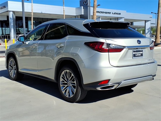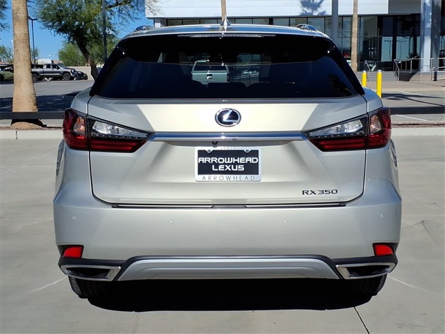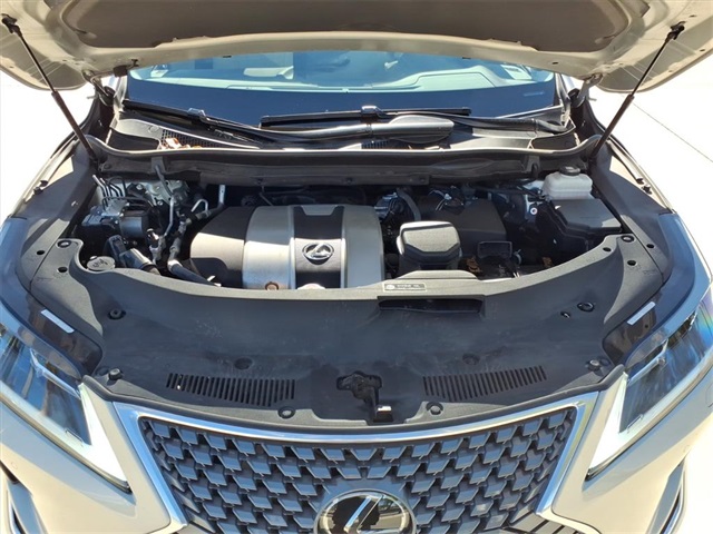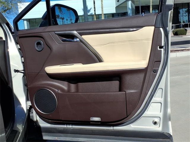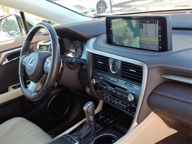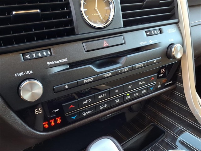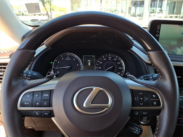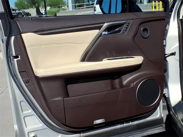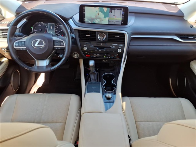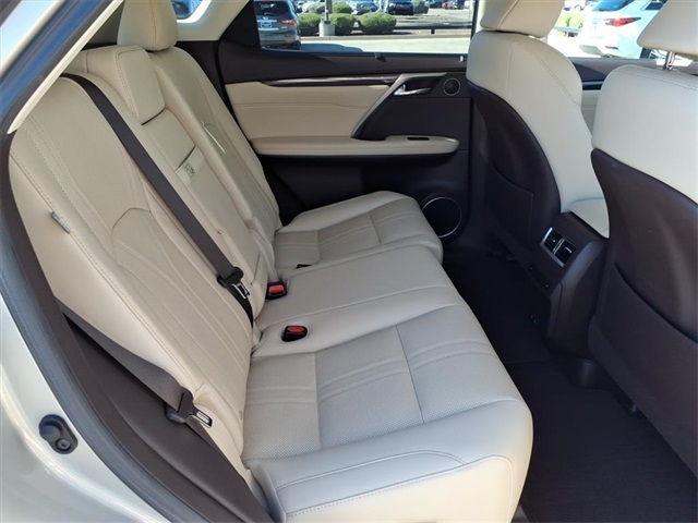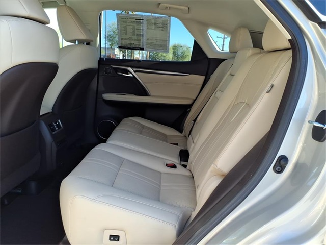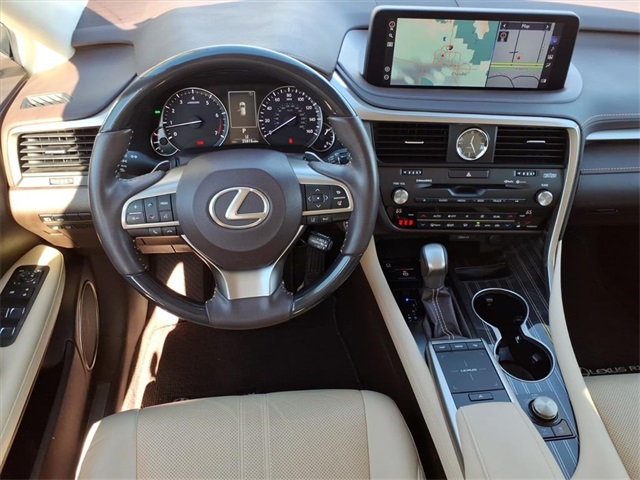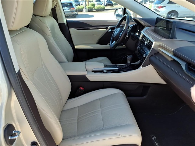 This Lexus RX is equipped with the following features: Luxury Package (Semi-Aniline Leather Seat Trim and Wheels: 20" Split-10-Spoke Alloy), Lexus Certified Certified, AWD, Parchment w/Semi-Aniline Leather Seat Trim, 3.329 Axle Ratio, 4-Wheel Disc Brakes, 9 Speakers, ABS brakes, Air Conditioning, Alloy wheels, AM/FM radio: SiriusXM, AM/FM/CD Radio, Anti-whiplash front head restraints, Apple CarPlay/Android Auto, Auto High-beam Headlights, Auto-dimming Rear-View mirror, Automatic temperature control, Brake assist, Bumpers: body-color, CD player, Compass, Delay-off headlights, Driver door bin, Driver vanity mirror, Dual front impact airbags, Dual front side impact airbags, Electronic Stability Control, Emergency communication system: Lexus Enform Safety Connect, Exterior Parking Camera Rear, Four wheel independent suspension, Front anti-roll bar, Front Bucket Seats, Front Center Armrest, Front dual zone A/C, Front reading lights, Fully automatic headlights, Garage door transmitter: HomeLink, Genuine wood console insert, Genuine wood door panel insert, Heated door mirrors, Illuminated entry, Knee airbag, Leather Shift Knob, Leather steering wheel, Low tire pressure warning, NuLuxe Seat Trim, Occupant sensing airbag, Outside temperature display, Overhead airbag, Overhead console, Panic alarm, Passenger door bin, Passenger vanity mirror, Power door mirrors, Power driver seat, Power Liftgate, Power passenger seat, Power steering, Power windows, Radio data system, Rain sensing wipers, Rear anti-roll bar, Rear reading lights, Rear seat center armrest, Rear side impact airbag, Rear window defroster, Rear window wiper, Remote keyless entry, Security system, Speed control, Speed-sensing steering, Split folding rear seat, Spoiler, Steering wheel mounted audio controls, Tachometer, Telescoping steering wheel, Tilt steering wheel, Traction control, Trip computer, Turn signal indicator mirrors, Variably intermittent wipers, and Wheels: 18" Split-5-Spoke Alloy.