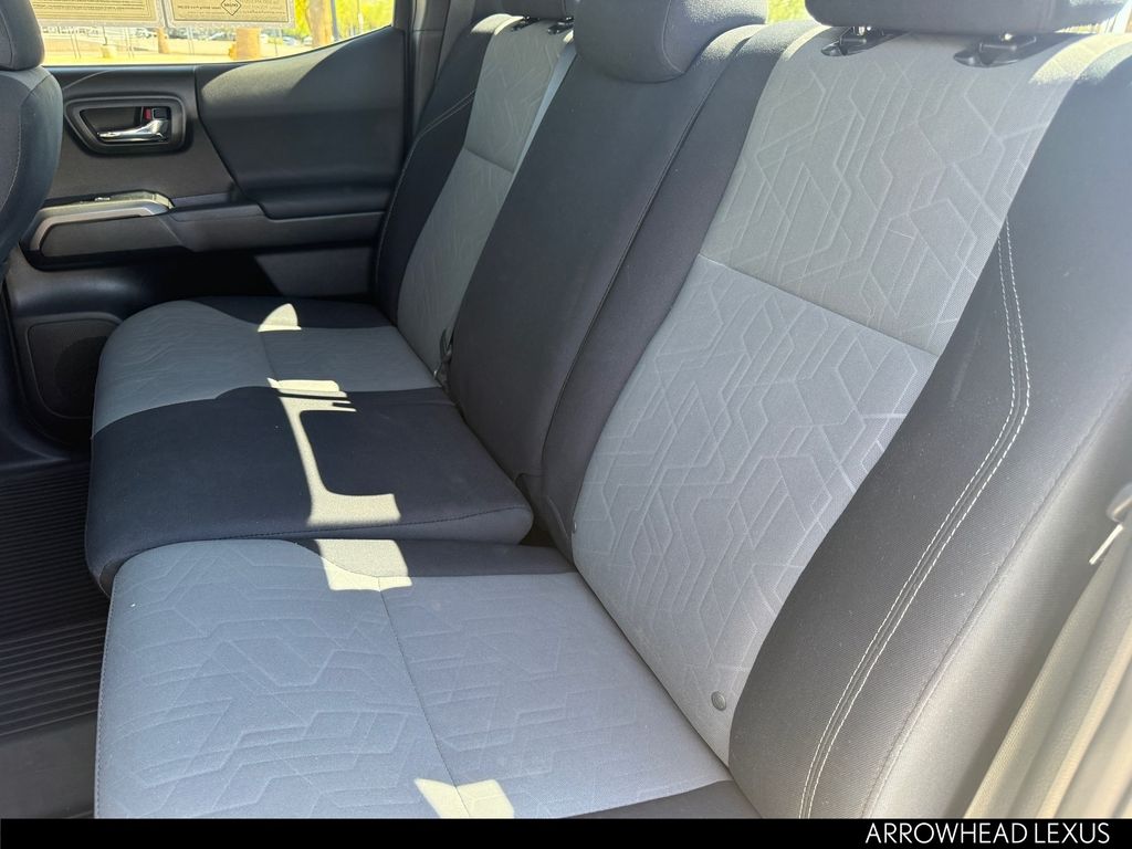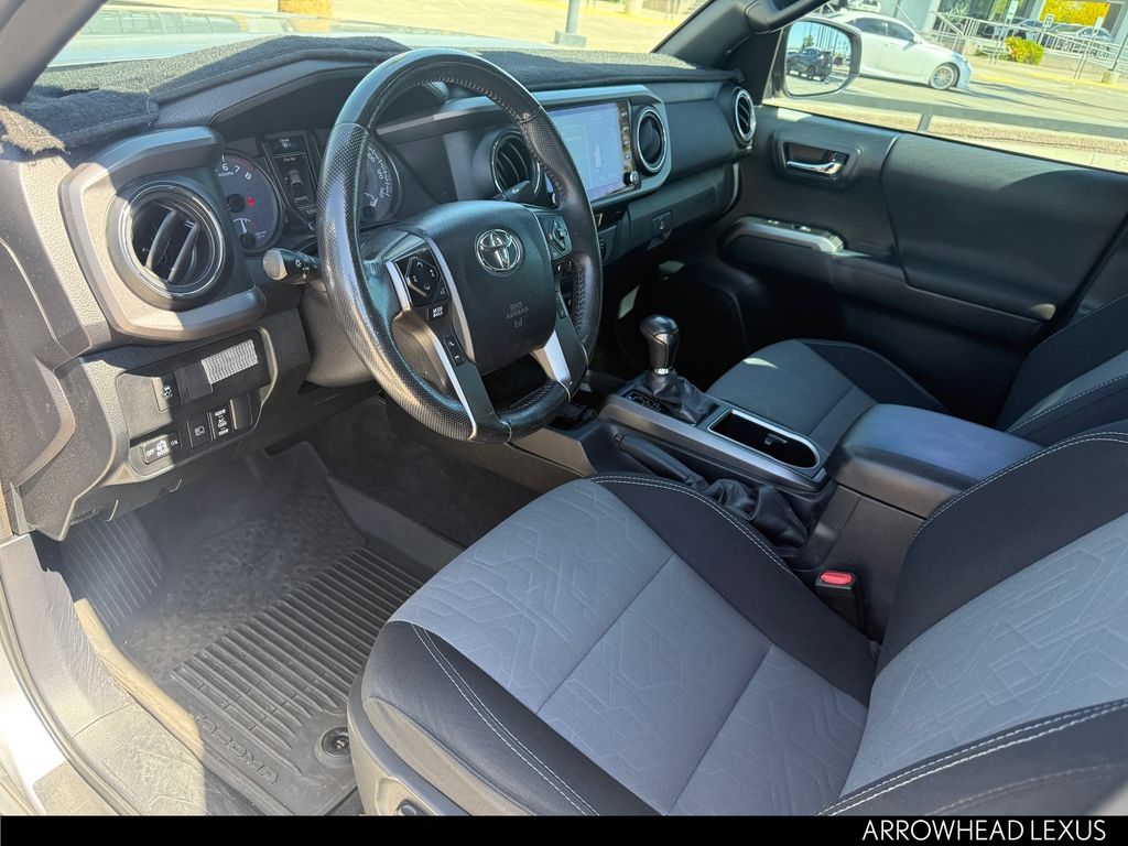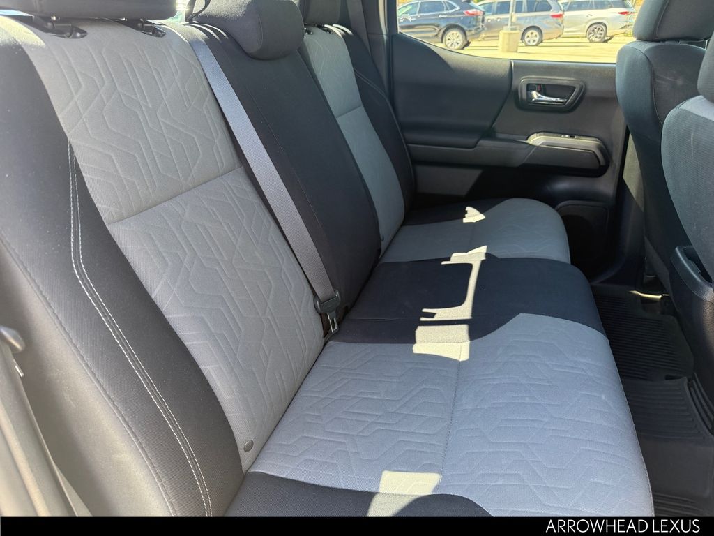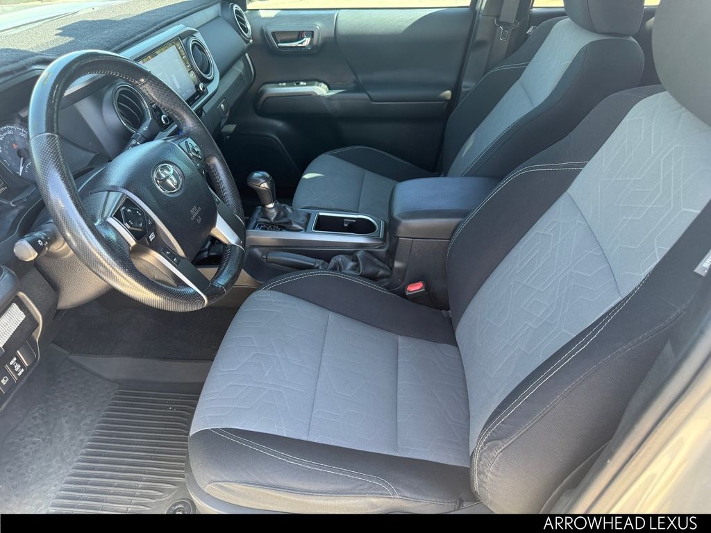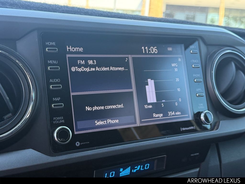This Toyota Tacoma is equipped with the following features: ABS brakes, Active Cruise Control, Air Conditioning, Alloy wheels, Automatic temperature control, Electronic Stability Control, Front dual zone A/C, Heated door mirrors, Illuminated entry, Low tire pressure warning, Remote keyless entry, Traction control, 120V/400W Deck Mounted AC Power, 6 Speakers, AM/FM radio: SiriusXM, Anti-whiplash front head restraints, Apple CarPlay/Android Auto, Auto High-beam Headlights, Auto-dimming Rear-View mirror, Axle Ratio: 3.91, Black Overfenders, Brake assist, Bumpers: body-color, Driver door bin, Dual front impact airbags, Dual front side impact airbags, Emergency communication system: Safety Connect with 1-year trial, Engine Immobilizer, Exterior Parking Camera Rear, Fabric Seat Trim (FD), Front anti-roll bar, Front Bucket Seats, Front Center Armrest, Front fog lights, Front reading lights, Front Seats, Front wheel independent suspension, Knee airbag, Leather Shift Knob, Occupant sensing airbag, Outside temperature display, Overhead airbag, Overhead console, Panic alarm, Passenger door bin, Power door mirrors, Power driver seat, Power steering, Power windows, Radio: AM/FM Radio, Rear step bumper, Security system, Smart Key w/Push Button Start, Speed control, Speed-sensing steering, Split folding rear seat, Steering wheel mounted audio controls, Tachometer, Telescoping steering wheel, Tilt steering wheel, Trip computer, Turn signal indicator mirrors, Variably intermittent wipers, and Wheels: 16" x 7J Machined Contrast Alloy.