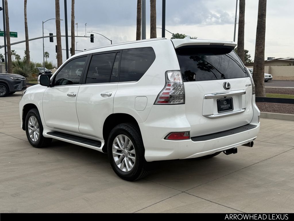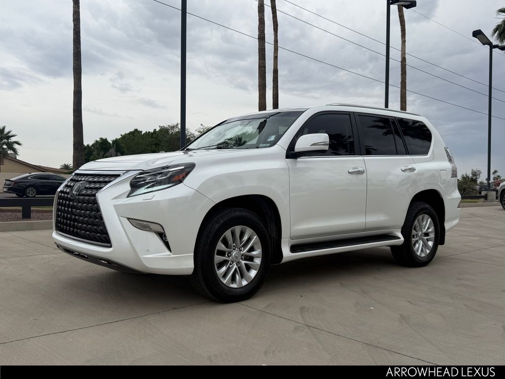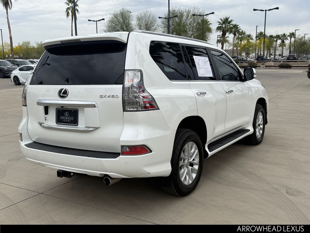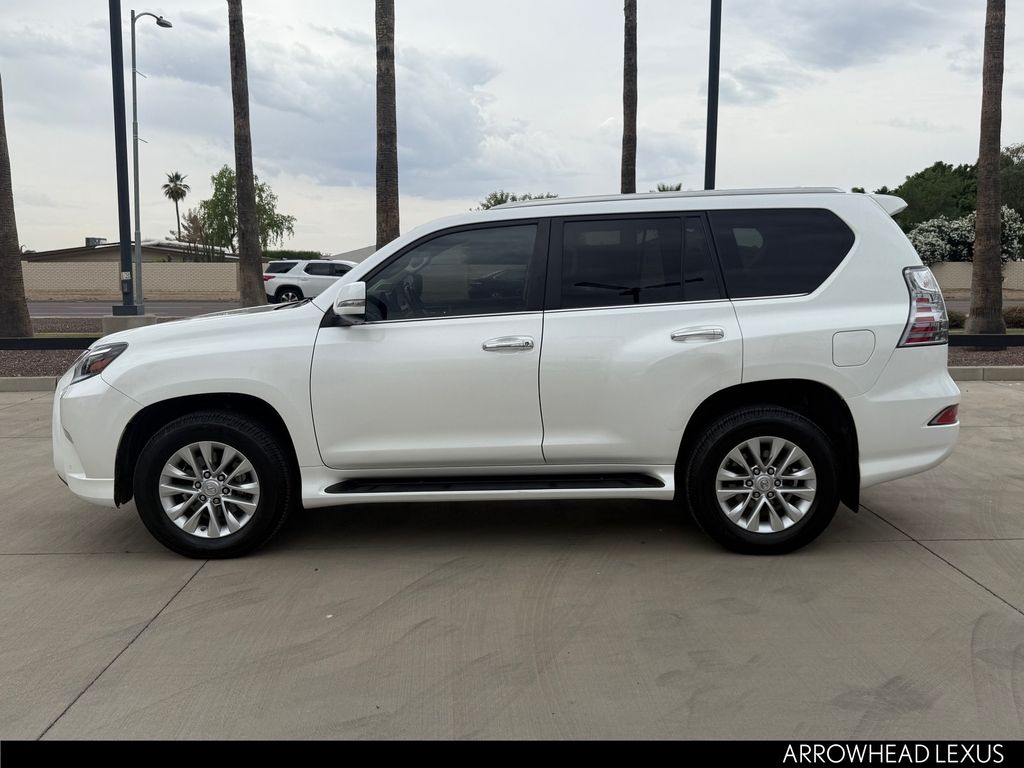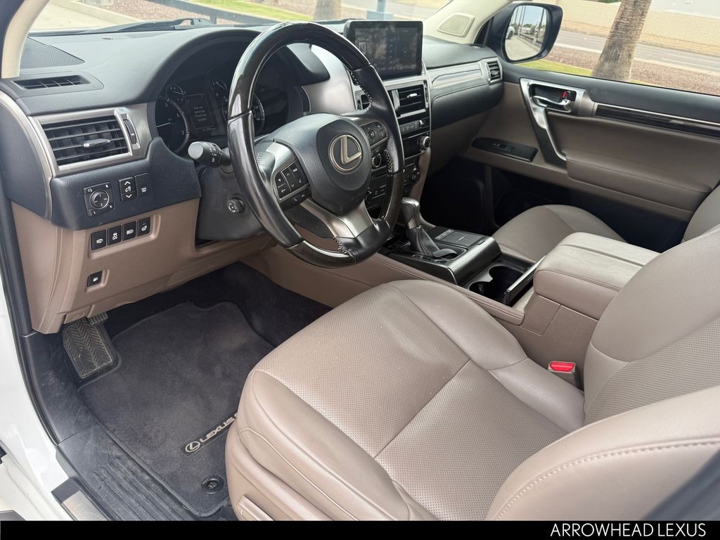 This Lexus GX is equipped with the following features: Premium Package (Dual Front & Rear Auto Air Conditioner, Front & Rear Heated Seats, LED Front Fog & Driving Lamp, NuLuxe Seat Trim, Ventilated Front Seats, Windshield De-Icer, and Windshield Wiper Control w/Rain Sensor), Lexus Certified Certified, 18" x 7.5J Aluminum Alloy Wheels, 3.909 Axle Ratio, 3rd row seats: split-bench, 4-Wheel Disc Brakes, 9 Speakers, ABS brakes, Air Conditioning, Alloy wheels, AM/FM radio: SiriusXM, Anti-whiplash front head restraints, Apple CarPlay/Android Auto, Auto High-beam Headlights, Auto tilt-away steering wheel, Auto-dimming Rear-View mirror, Automatic temperature control, Brake assist, Bumpers: body-color, CD player, Compass, Delay-off headlights, Driver door bin, Driver vanity mirror, Driver's Seat Mounted Armrest, Dual front impact airbags, Dual front side impact airbags, Electronic Stability Control, Emergency communication system, Exterior Parking Camera Rear, Front anti-roll bar, Front Bucket Seats, Front dual zone A/C, Front reading lights, Front wheel independent suspension, Fully automatic headlights, Garage door transmitter: HomeLink, Heated door mirrors, Illuminated entry, Illuminated running boards, Knee airbag, Leather Shift Knob, Leather steering wheel, Low tire pressure warning, Memory seat, Navigation System, NuLuxe Synthetic Leather Seat Trim, Occupant sensing airbag, Outside temperature display, Overhead airbag, Overhead console, Panic alarm, Passenger door bin, Passenger seat mounted armrest, Passenger vanity mirror, Power door mirrors, Power driver seat, Power moonroof, Power passenger seat, Power steering, Power windows, Radio data system, Radio: Lexus Multimedia System, Rear anti-roll bar, Rear reading lights, Rear seat center armrest, Rear side impact airbag, Rear window defroster, Rear window wiper, Remote keyless entry, Roof rack: rails only, Security system, Speed control, Speed-sensing steering, Split folding rear seat, Spoiler, Steering wheel memory, Steering wheel mounted audio controls, Tachometer, Telescoping steering wheel, Tilt steering wheel, Traction control, Trip computer, Turn signal indicator mirrors, and Variably intermittent wipers.