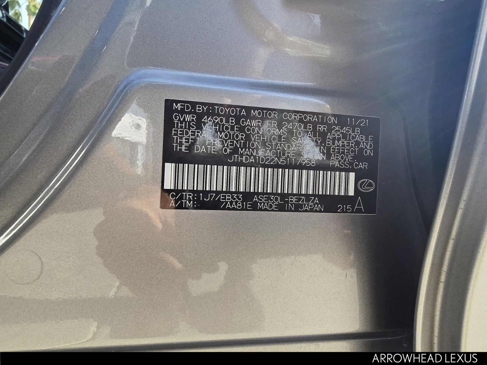 - VIN : JTHDA1D22N5117958