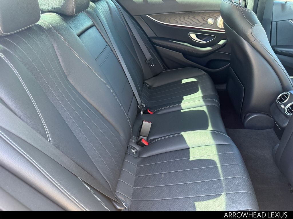 This Mercedes-Benz E-Class is equipped with the following features: Panorama Sunroof, 4-Wheel Disc Brakes, 8 Speakers, ABS brakes, Adaptive Highbeam Assist, Air Conditioning, Alloy wheels, AM/FM radio: SiriusXM, Android Auto, Anti-whiplash front head restraints, Apple CarPlay, Apple CarPlay/Android Auto, Auto High-beam Headlights, Auto tilt-away steering wheel, Auto-dimming door mirrors, Auto-dimming Rear-View mirror, Automatic temperature control, Black Headliner, Brake assist, Bumpers: body-color, Burmester Surround Sound System, Center Console in Natural Grain Black Ash Wood, Delay-off headlights, Driver door bin, Driver vanity mirror, Dual front impact airbags, Dual front side impact airbags, Electronic Stability Control, Emergency communication system: Mercedes me connect, Extended Mobility Tires, Exterior Parking Camera Rear, First Aid Kit, Four wheel independent suspension, Front anti-roll bar, Front Bucket Seats, Front Center Armrest, Front dual zone A/C, Front reading lights, Fully automatic headlights, Garage door transmitter: HomeLink, Genuine wood console insert, Genuine wood dashboard insert, Genuine wood door panel insert, Head restraints memory, Heated door mirrors, Heated Front Seats, Heated front seats, Illuminated entry, Knee airbag, Leather Shift Knob, LED Logo Projectors (Set of 2), Low tire pressure warning, MB-Tex Upholstery, Memory seat, Navigation system: MBUX, Occupant sensing airbag, Outside temperature display, Overhead airbag, Overhead console, Panic alarm, PARKTRONIC w/Active Parking Assist, Passenger door bin, Passenger vanity mirror, Power adjustable front head restraints, Power adjustable rear head restraints, Power door mirrors, Power driver seat, Power passenger seat, Power steering, Power windows, Radio data system, Radio: MBUX Infotainment System w/Navigation, Rain sensing wipers, Rear anti-roll bar, Rear Deck Spoiler in Body Color, Rear fog lights, Rear reading lights, Rear seat center armrest, Rear window defroster, Remote keyless entry, Security system, SiriusXM Radio, Smartphone Integration, Speed control, Speed-sensing steering, Split folding rear seat, Steering wheel memory, Steering wheel mounted audio controls, Surround View System, Tachometer, Telescoping steering wheel, Tilt steering wheel, Traction control, Trip computer, Turn signal indicator mirrors, Variably intermittent wipers, Weather band radio, Wheel Locking Bolts, Wheels: 18" x 8.0" Twin 5-Spoke, Wheels: 19" x 8.0" 10-Spoke, and Wireless Charging w/NFC Pairing.