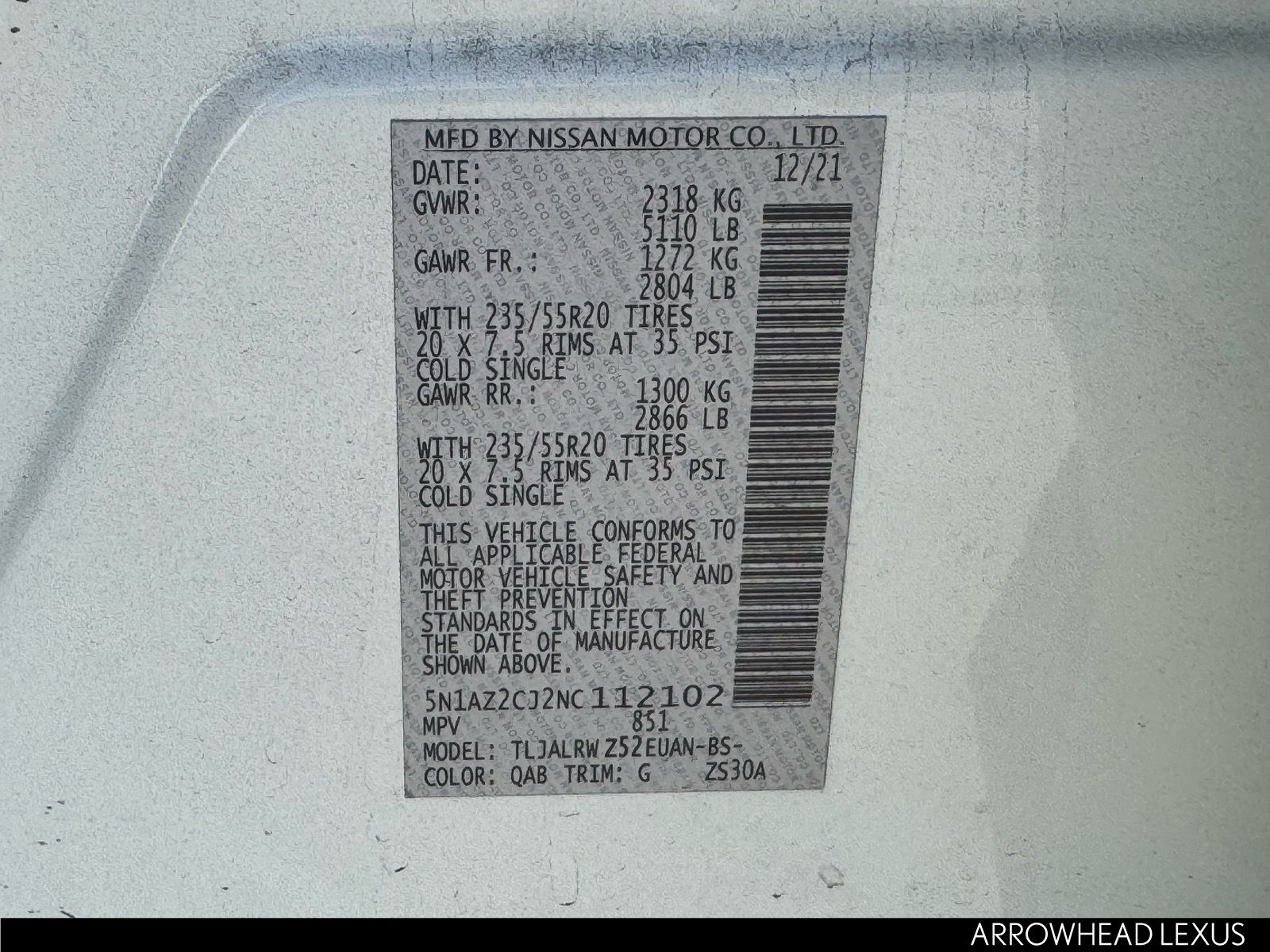 - VIN : 5N1AZ2CJ2NC112102