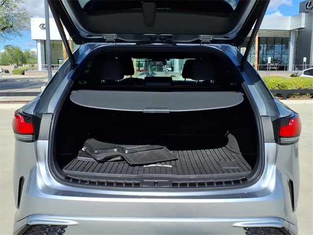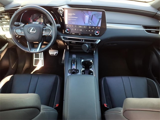 This Lexus RX is equipped with the following features: Cold Area Package (Windshield Wiper De-Icer), Lexus Certified Certified, 2.4L I4 PDI Hybrid Turbocharged DOHC 16V LEV3-SULEV30 271hp, AWD, Graphite Leather, 12 Speakers, 21" Alloy Wheels, 3.74 Axle Ratio, 4-Wheel Disc Brakes, ABS brakes, Adaptive suspension, Advanced Park, Air Conditioning, Alloy wheels, AM/FM radio: SiriusXM, Anti-whiplash front head restraints, Auto High Beam, Auto High-beam Headlights, Auto tilt-away steering wheel, Auto-dimming door mirrors, Auto-dimming Rear-View mirror, Auto-leveling suspension, Automatic temperature control, Brake assist, Bumpers: body-color, Cargo Net, Carpet Cargo Mat, Compass, Delay-off headlights, Digital Key, Digital Rearview Mirror, Driver door bin, Driver vanity mirror, Dual front impact airbags, Dual front side impact airbags, Electronic Stability Control, Emergency communication system: Safety Connect (10-year trial), Exterior Parking Camera Rear, Four wheel independent suspension, Front anti-roll bar, Front Bucket Seats, Front Center Armrest, Front dual zone A/C, Front fog lights, Front reading lights, Fully automatic headlights, Garage door transmitter: HomeLink, Heads-Up Display, Heated & Ventilated Front Seats, Heated and Ventilated Rear Seats, Heated door mirrors, Heated front seats, Illuminated entry, Leather Shift Knob, Leather/Ultra Suede Seat Trim, Low tire pressure warning, Memory seat, Navigation System, Occupant sensing airbag, Outside temperature display, Overhead airbag, Overhead console, Panic alarm, Panorama Glass Moonroof, Panoramic View Monitor, Passenger door bin, Passenger vanity mirror, Power door mirrors, Power driver seat, Power Liftgate, Power moonroof, Power passenger seat, Power Rear Door w/Kick Sensor, Power Rear Seats, Power steering, Power windows, Premium Triple-Beam LED Headlamps, Radio data system, Radio: Lexus Interface, Radio: Lexus Interface w/Mark Levinson Audio, Rain sensing wipers, Rear air conditioning, Rear anti-roll bar, Rear reading lights, Rear seat center armrest, Rear side impact airbag, Rear window defroster, Rear window wiper, Remote keyless entry, Security system, Side Puddle Lamps (PL), Special Color (PJ), Speed control, Speed-sensing steering, Split folding rear seat, Spoiler, Sport steering wheel, Steering wheel memory, Steering wheel mounted audio controls, Telescoping steering wheel, Tilt steering wheel, Traction control, Traffic Jam Assist, Trip computer, Turn signal indicator mirrors, Variably intermittent wipers, Ventilated front seats, Wheels: 21" 10-Spoke Alloy, and Wireless Apple CarPlay/Wireless Android Auto.