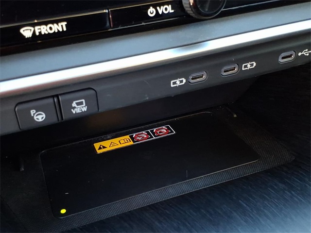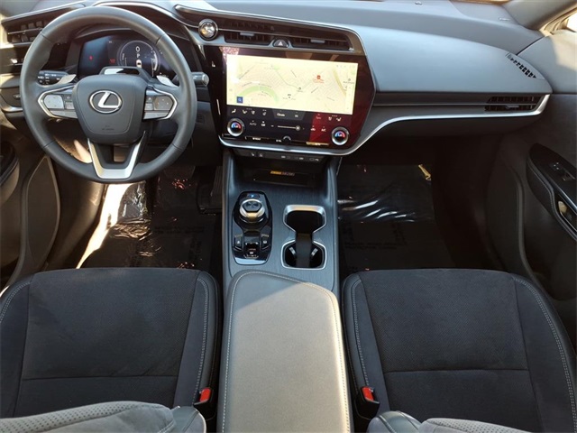 This Lexus RZ is equipped with the following features: Accessory Package (Z1) (Cargo Net, Carpet Cargo Mat, and Key Gloves), Cold Area Package, Lexus Certified Certified, 13 Speakers, 4-Wheel Disc Brakes, ABS brakes, Air Conditioning, Alloy wheels, AM/FM radio: SiriusXM, Apple CarPlay/Android Auto, Auto High-beam Headlights, Auto-dimming door mirrors, Auto-dimming Rear-View mirror, Automatic temperature control, Brake assist, Bumpers: body-color, Delay-off headlights, Driver door bin, Driver vanity mirror, Dual front impact airbags, Dual front side impact airbags, Dynamic Sky Panorama Glass Roof w/Dimming, Electronic Stability Control, Emergency communication system: Safety Connect (10-year trial), Exterior Parking Camera Rear, Four wheel independent suspension, Front anti-roll bar, Front Bucket Seats, Front Center Armrest, Front dual zone A/C, Front reading lights, Fully automatic headlights, Heads-Up Display, Heated & Ventilated Front Bucket Seats, Heated door mirrors, Heated front seats, Heated rear seats, Heated steering wheel, Illuminated entry, Illuminated Front Badge, Knee airbag, Low tire pressure warning, Memory seat, Navigation System, Occupant sensing airbag, Outside temperature display, Overhead airbag, Overhead console, Panic alarm, Passenger door bin, Passenger vanity mirror, Power door mirrors, Power driver seat, Power Liftgate, Power passenger seat, Power steering, Power windows, Quick Charge Cables-Mobile, Radio data system, Radio: Lexus Interface w/Mark Levinson Audio, Rear anti-roll bar, Rear Bumper Applique, Rear seat center armrest, Rear window defroster, Remote keyless entry, Security system, Speed control, Speed-sensing steering, Split folding rear seat, Spoiler, Steering wheel memory, Steering wheel mounted audio controls, TBD Axle Ratio, Telescoping steering wheel, Tilt steering wheel, Traction control, Trip computer, Turn signal indicator mirrors, Ultrasuede Seat Trim, Variably intermittent wipers, Ventilated front seats, and Wheels: 20" 10-Spoke Premium Alloy.